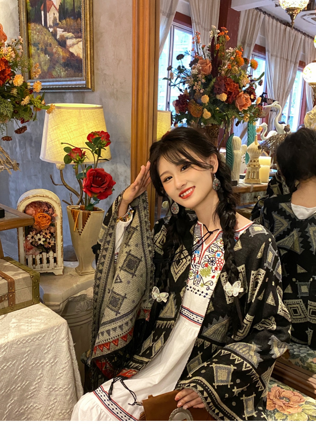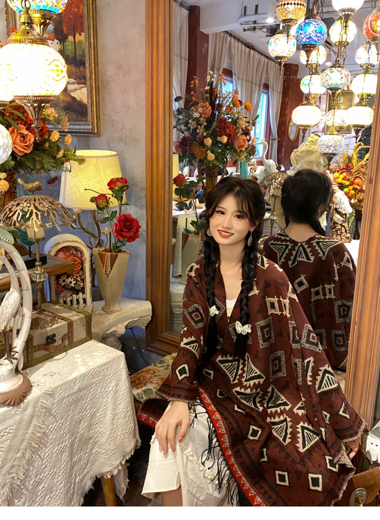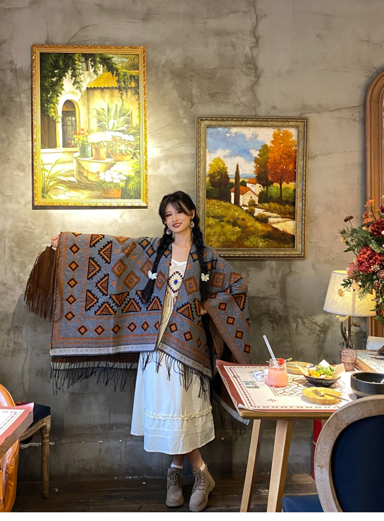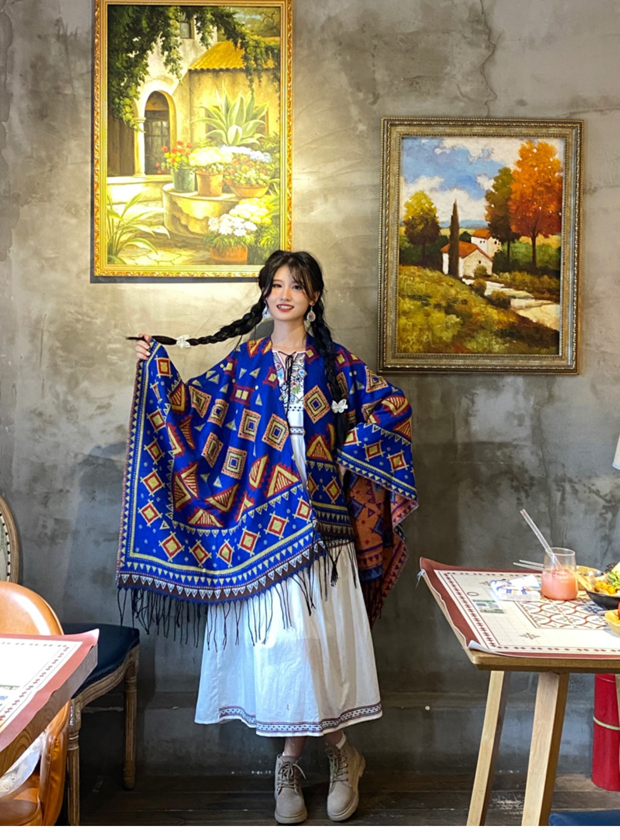 민족 스타일 여행 케이프 신장 티베트 북서부 초원 관광복 사진 따뜻한 외부 케이프스토어 가기
