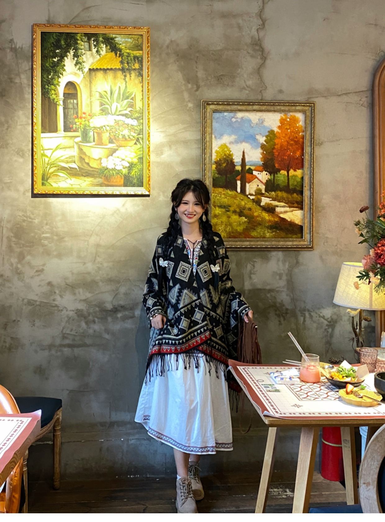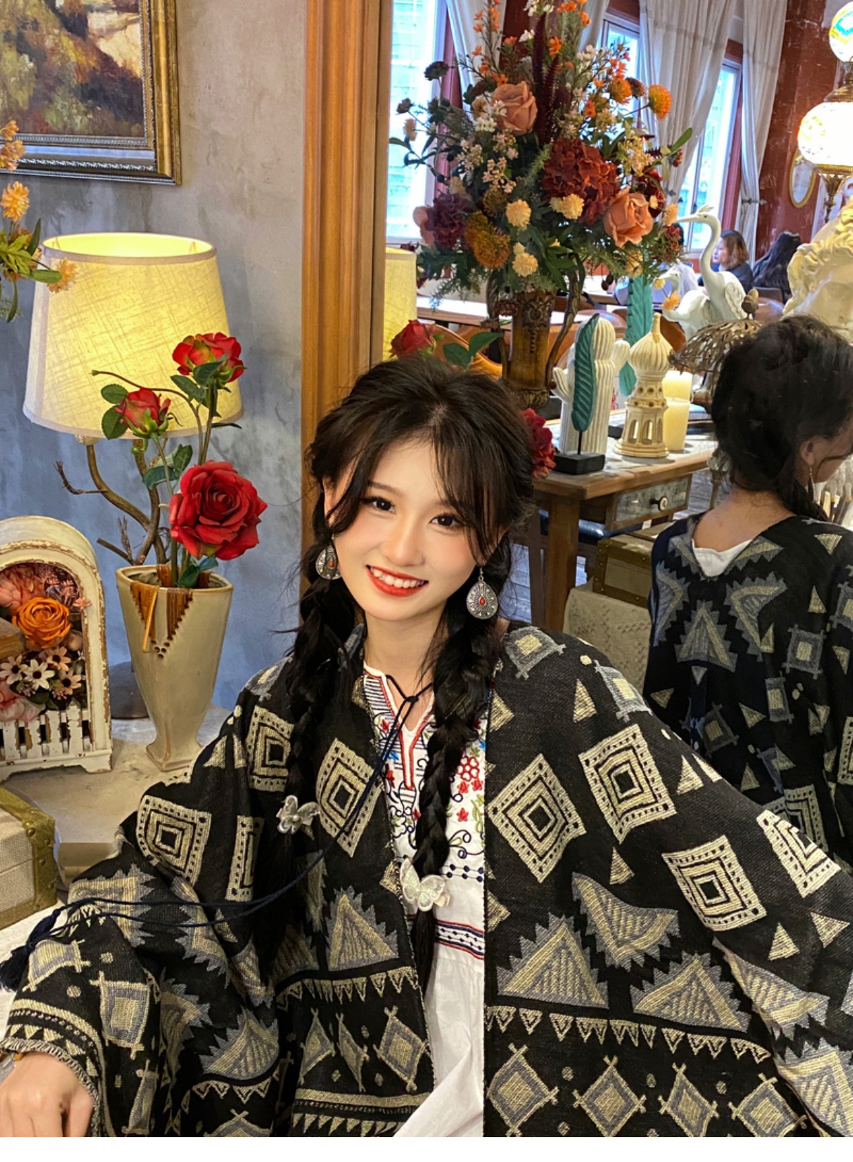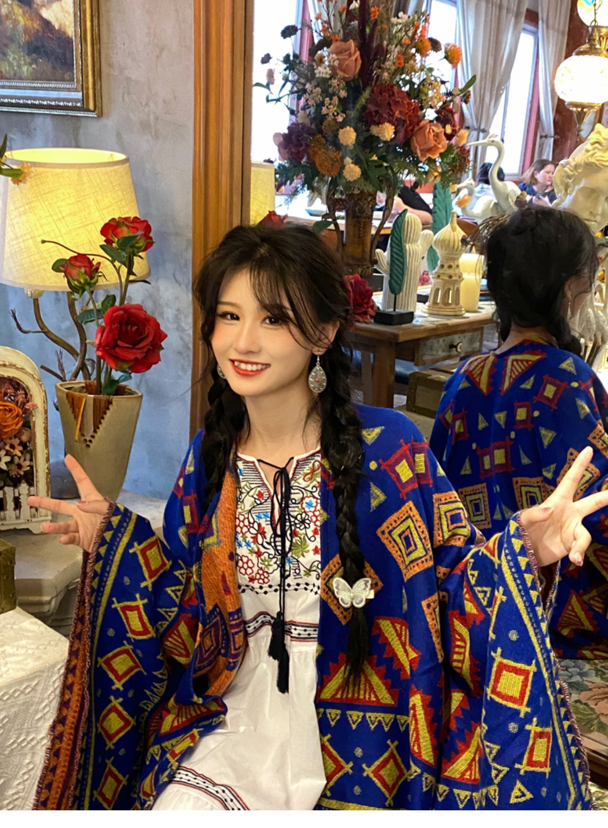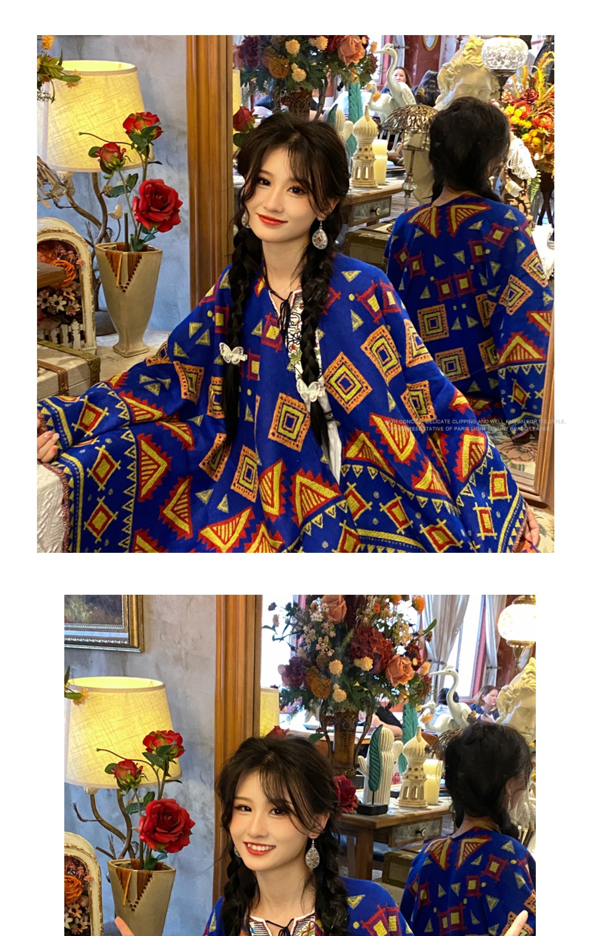 민족 스타일 여행 케이프 신장 티베트 북서부 초원 관광복 사진 따뜻한 외부 케이프스토어 가기