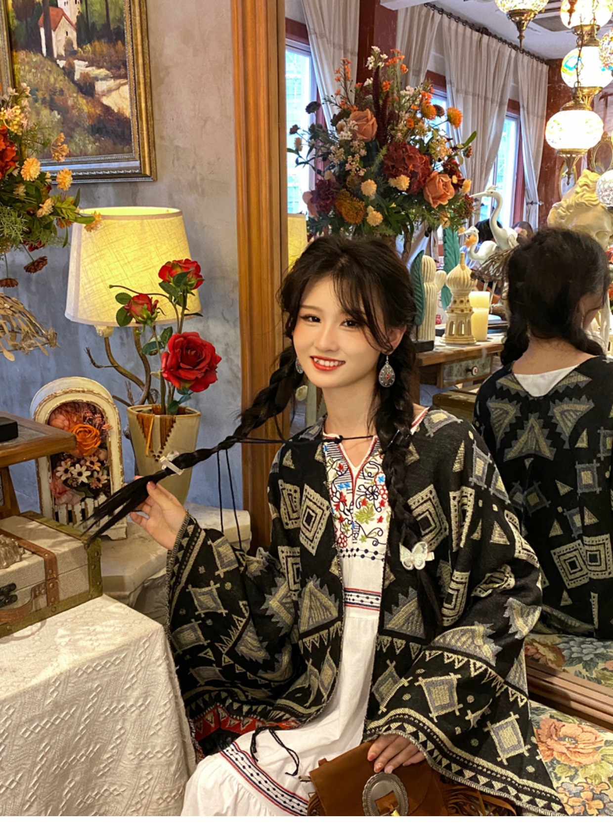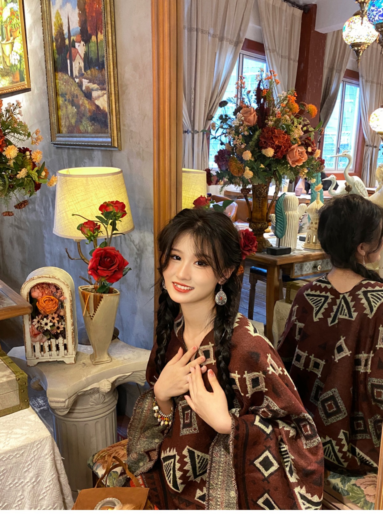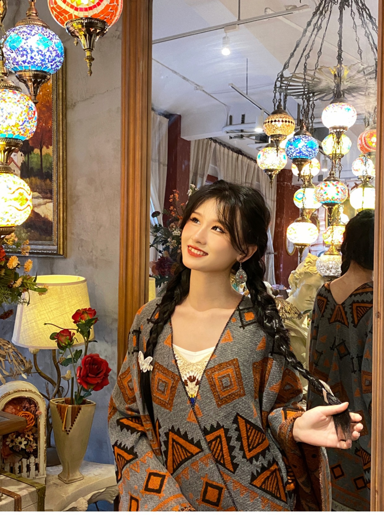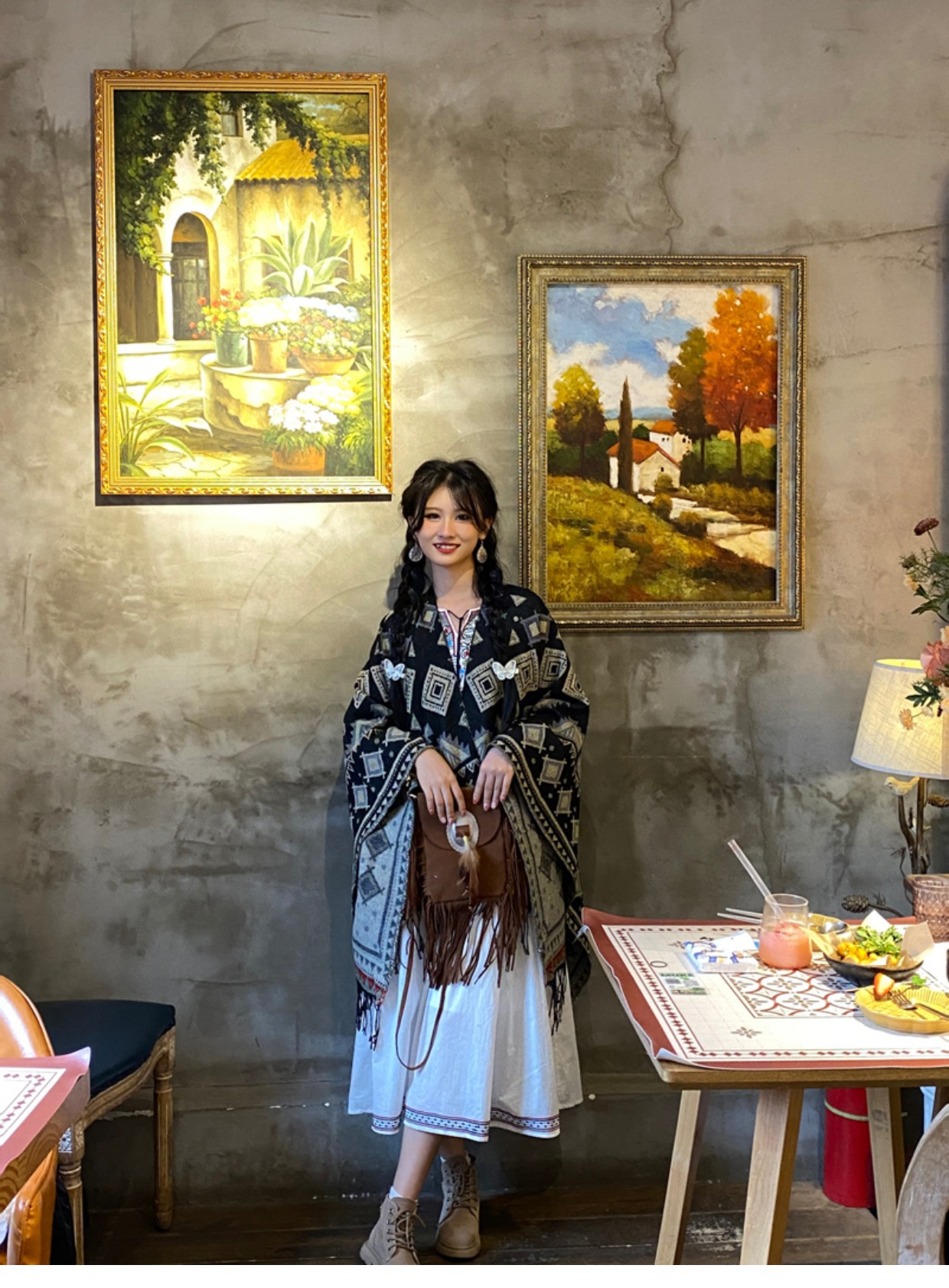 민족 스타일 여행 케이프 신장 티베트 북서부 초원 관광복 사진 따뜻한 외부 케이프스토어 가기