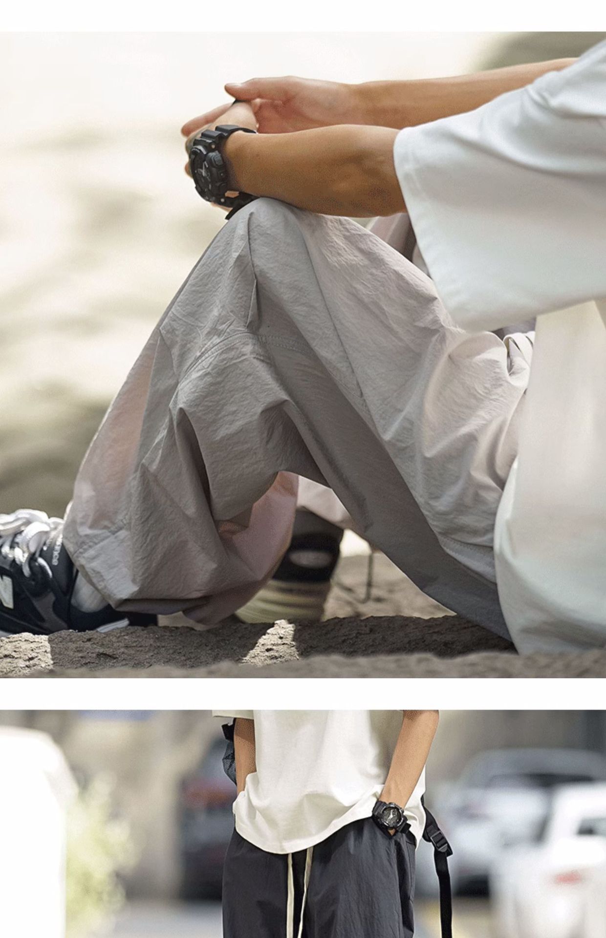 아이스 실크 빠른 건조 낙하산 바지 남자 여름 얇은 느슨한 발목 길이 바지 더피 슈아이 차오 브랜드 작업복 캐주얼 바지스토어 가기