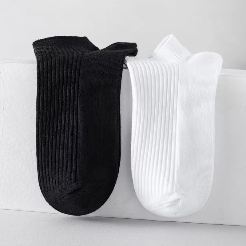 주지 양말 남성과 여성 흑백 단색 탈취제 땀 흡수 양말 얕은 입 낮은 쪽 통기성 흰색 양말 도매 공급