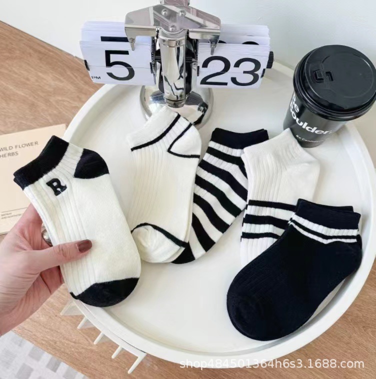 주지 양말 남성과 여성 흑백 단색 탈취제 땀 흡수 양말 얕은 입 낮은 쪽 통기성 흰색 양말 도매 공급스토어 가기