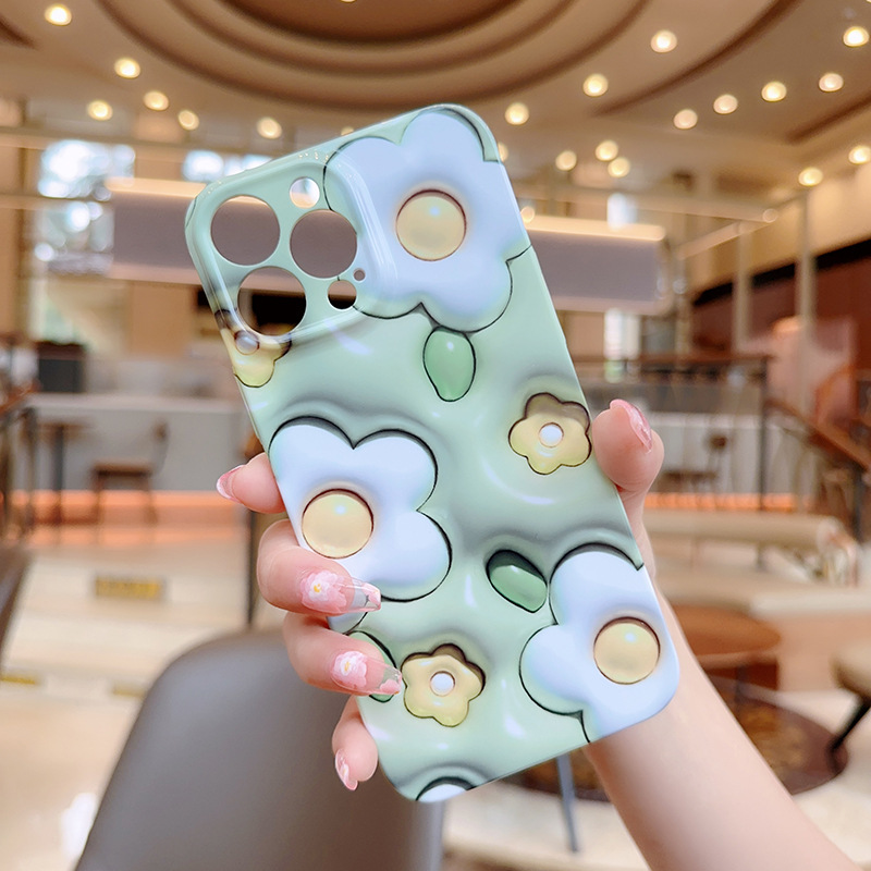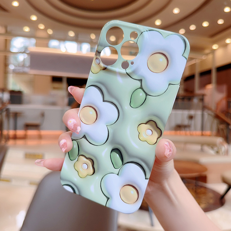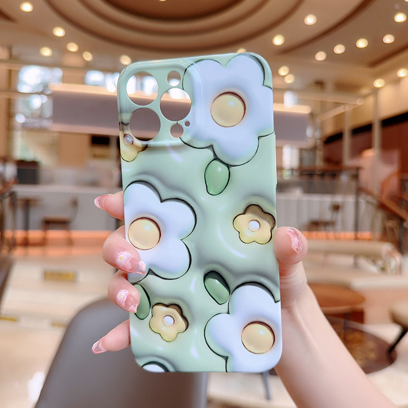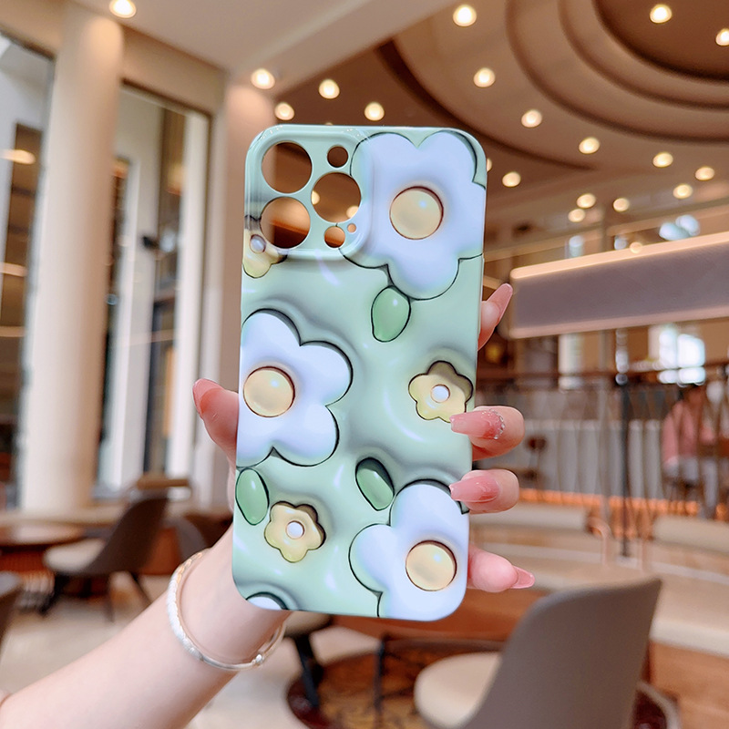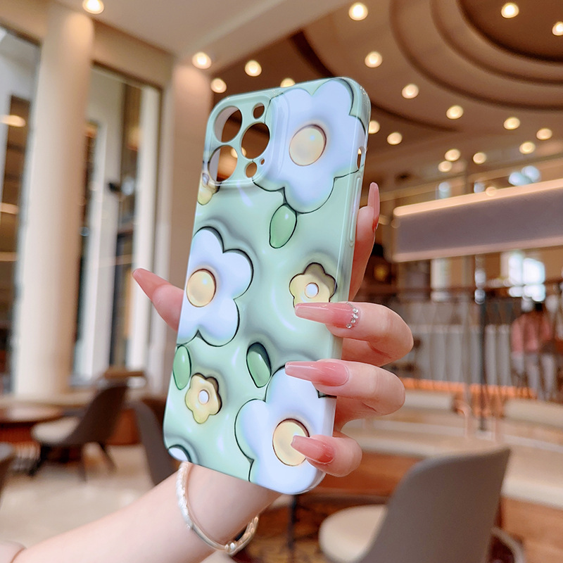애플 15promax 전화 케이스 새로운 모든 것을 포함하는 전화 케이스 높은 수준의 느낌을위한 작은 신선한 3D 녹색 흰색 꽃스토어 가기