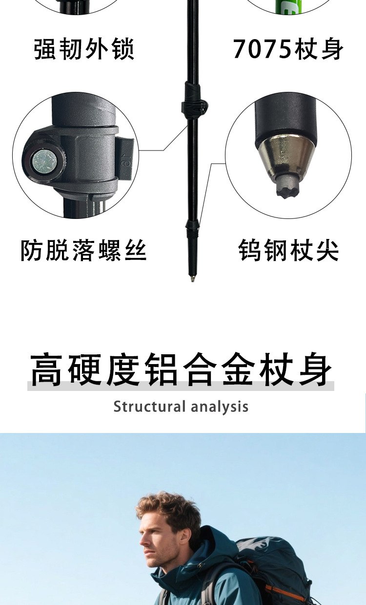 신축성 등산 스틱 7075 가공 인쇄 폼 핸들 금속 버클 등산 스틱 미끄럼 방지 경량 등산용