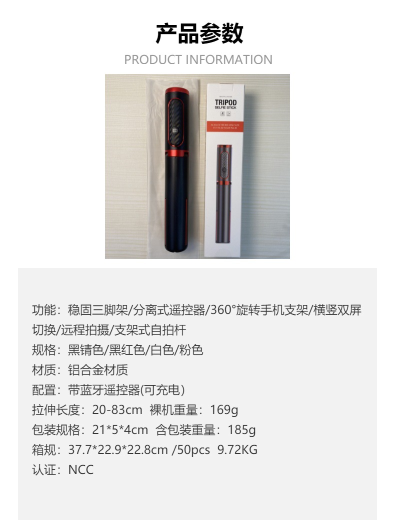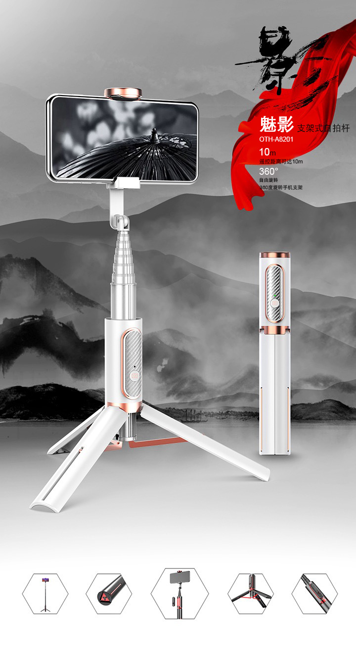 오페라 통합 블루투스 셀카 스틱 원격 제어 충전 라이브 vlog 삼각대 NCC 인증의 M18 팬텀