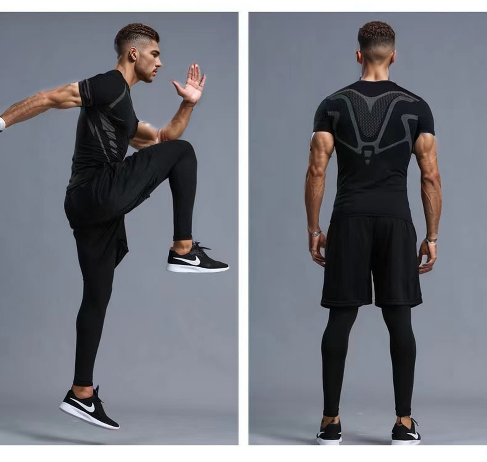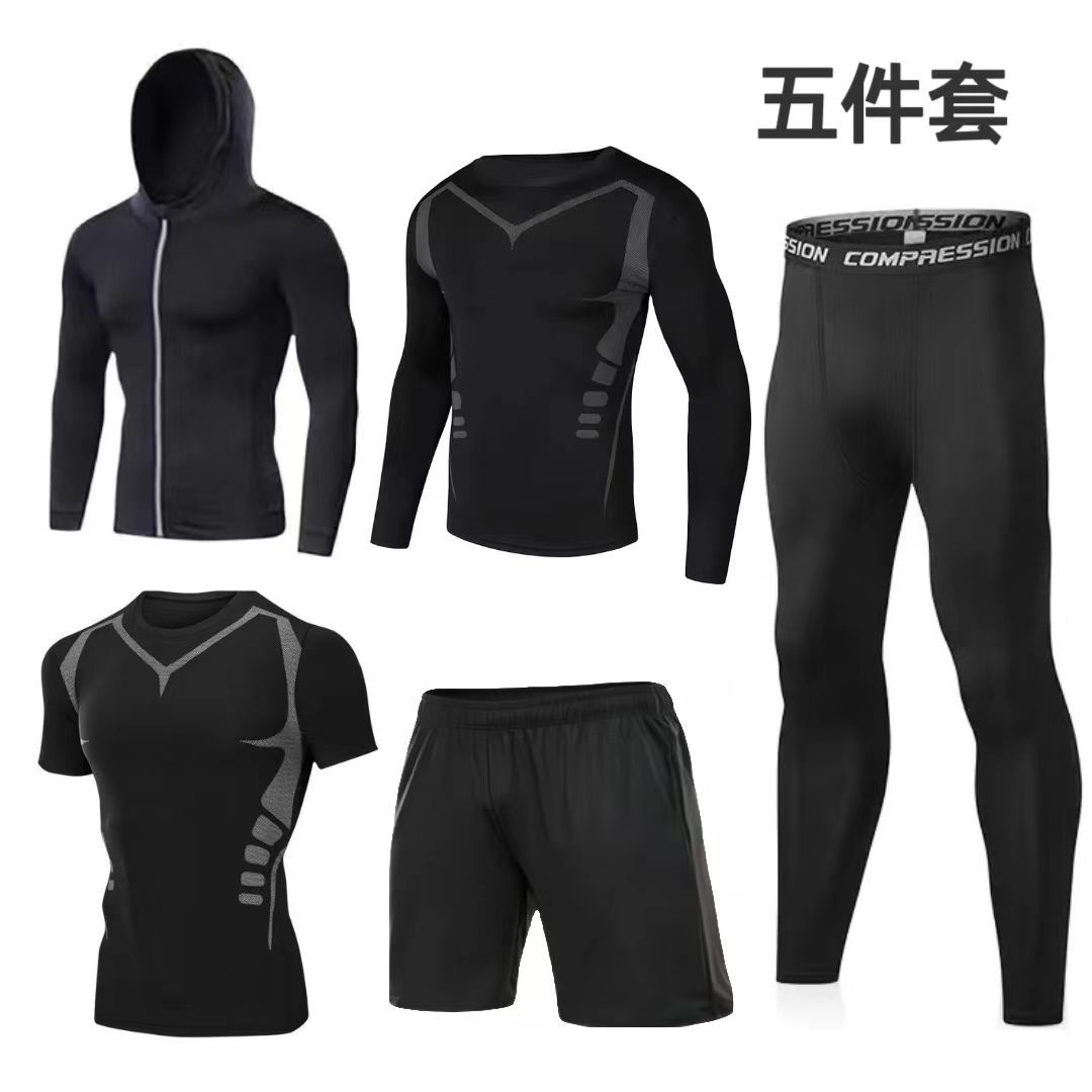 피트니스 슈트 남성용 타이트한 야외 아침 달리기 스포츠 5피스 러닝 트레이닝 고탄성 통기성 속건 스포츠 슈트스토어 가기