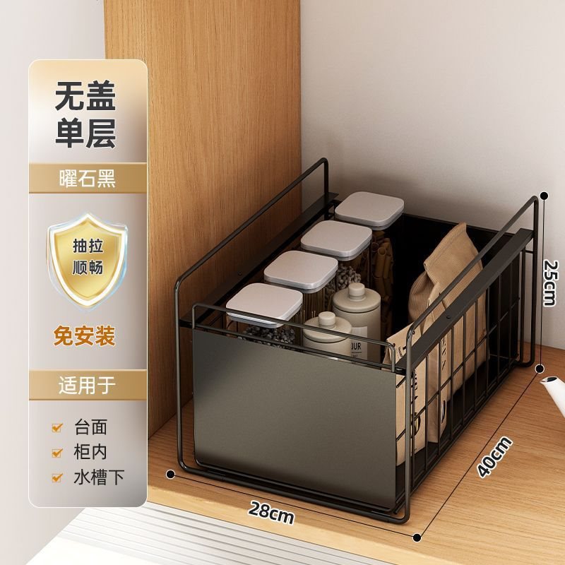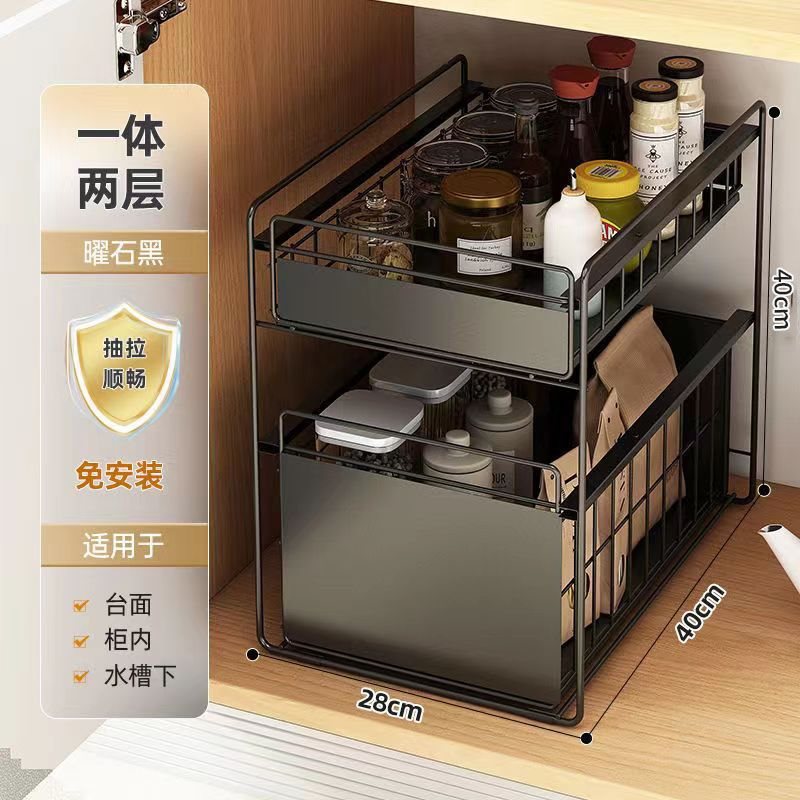 캐비닛 스토리지 설치 무료 풀 아웃 스토리지 랙 주방 더블 레이어 낮은 싱크 스토리지 랙 내부 레이어 작은 선반스토어 가기