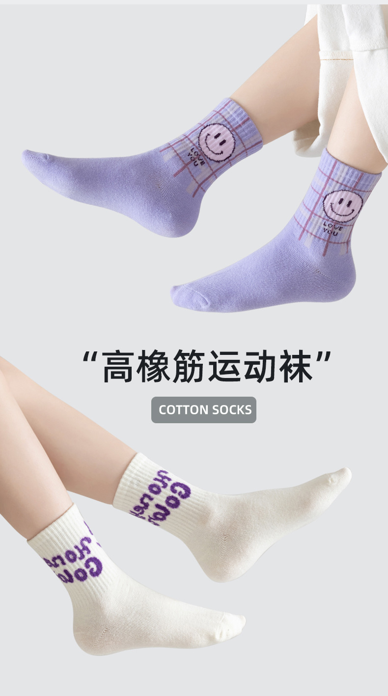 24儿童袜子春秋棉袜中筒袜女童ins运动袜中大童笑脸字母潮袜批发