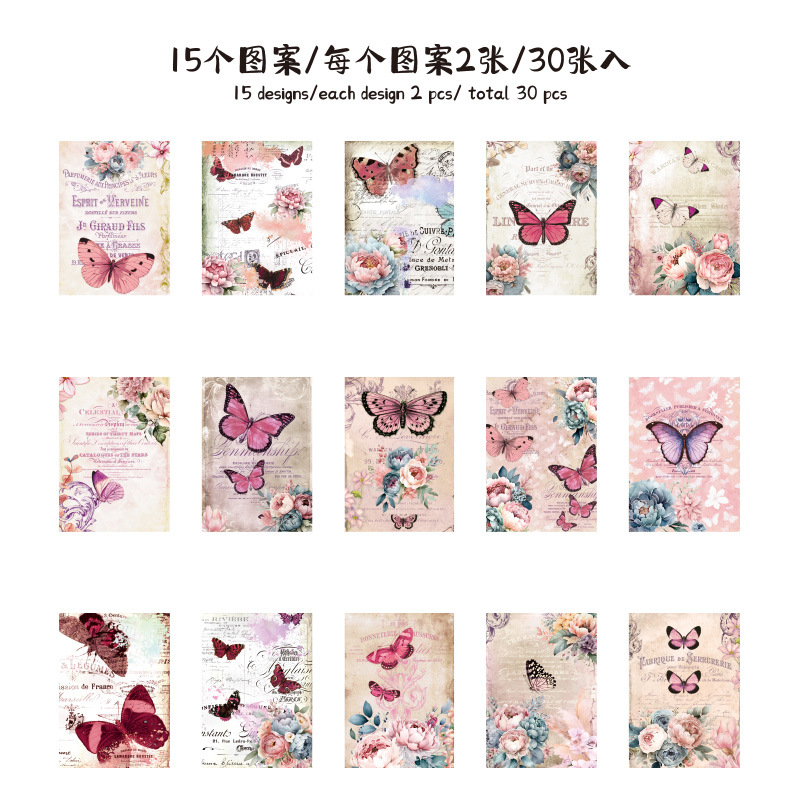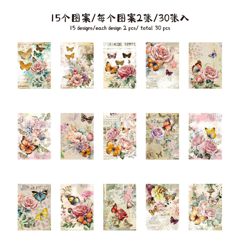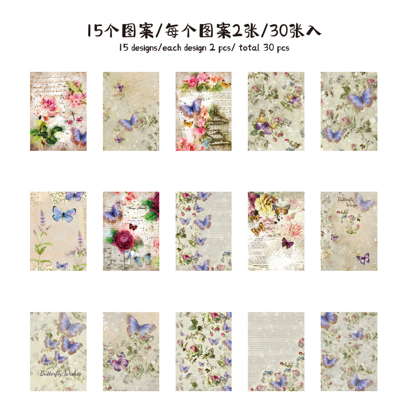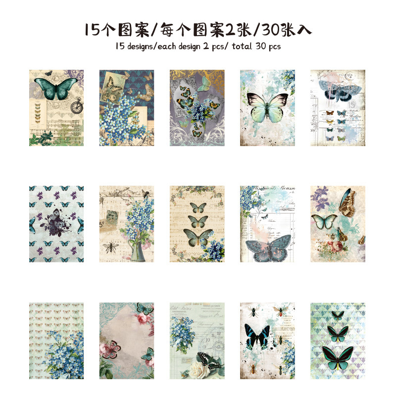 나비 꿈 콜라주 소재 종이 복고풍 스타일 배경 장식 스티커 DIY 장식 재료 콜라주 노트