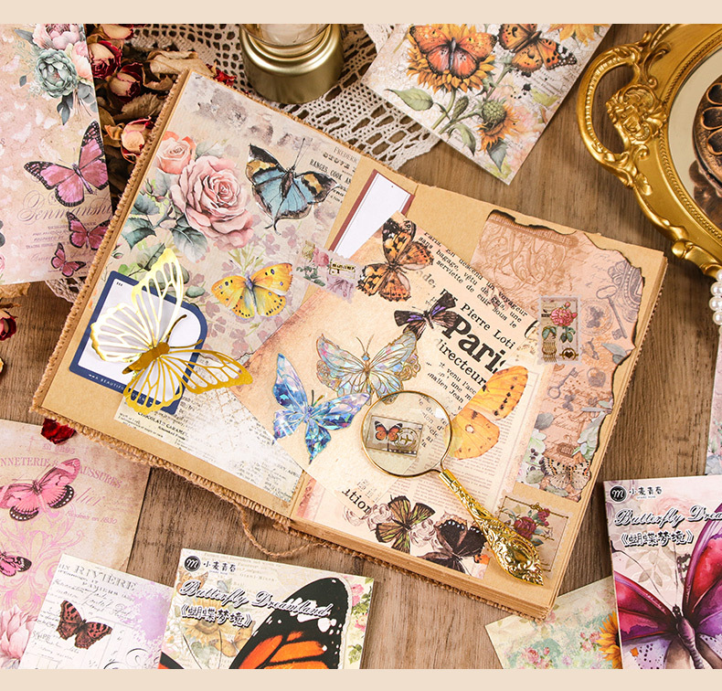 나비 꿈 콜라주 소재 종이 복고풍 스타일 배경 장식 스티커 DIY 장식 재료 콜라주 노트스토어 가기