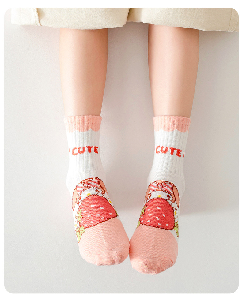 2024 가을과 겨울 여자 양말 만화 면 양말 클래스 통기성 봄과 가을 소녀 높은 고무 밴드 튜브 조수 양말 도매스토어 가기