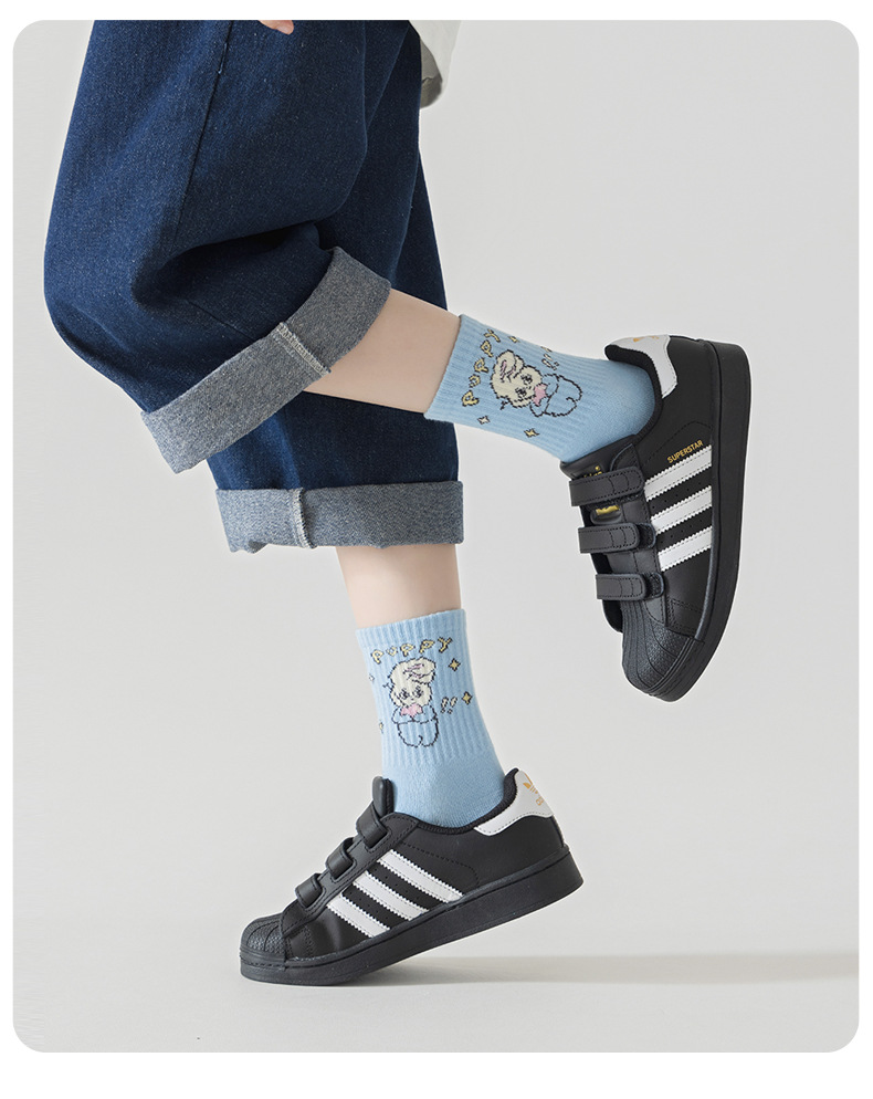 소녀 양말 미드 튜브 가을과 겨울 코튼 양말 소녀 만화 컬러 타이드 양말 높은 고무 어린이 스포츠 양말