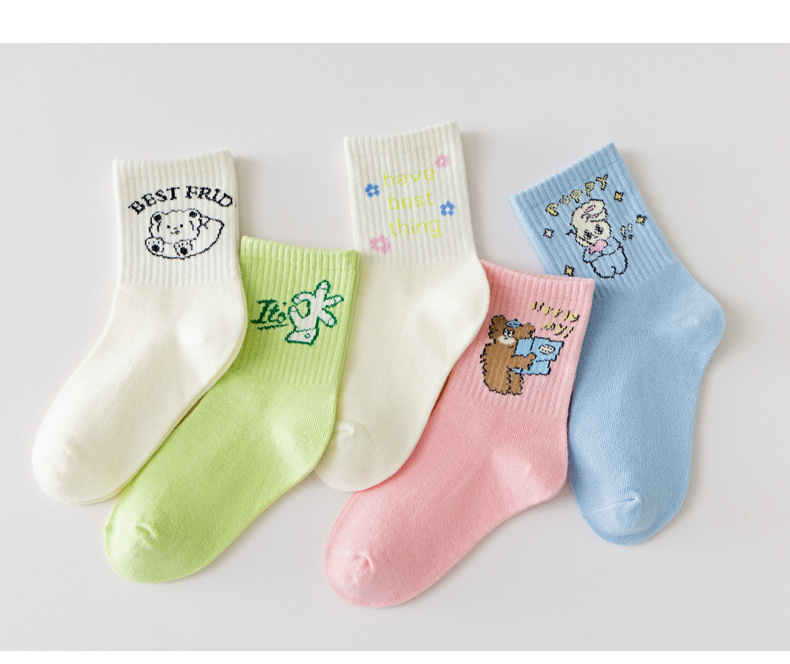 24儿童袜子春秋棉袜中筒袜女童ins运动袜中大童笑脸字母潮袜批发