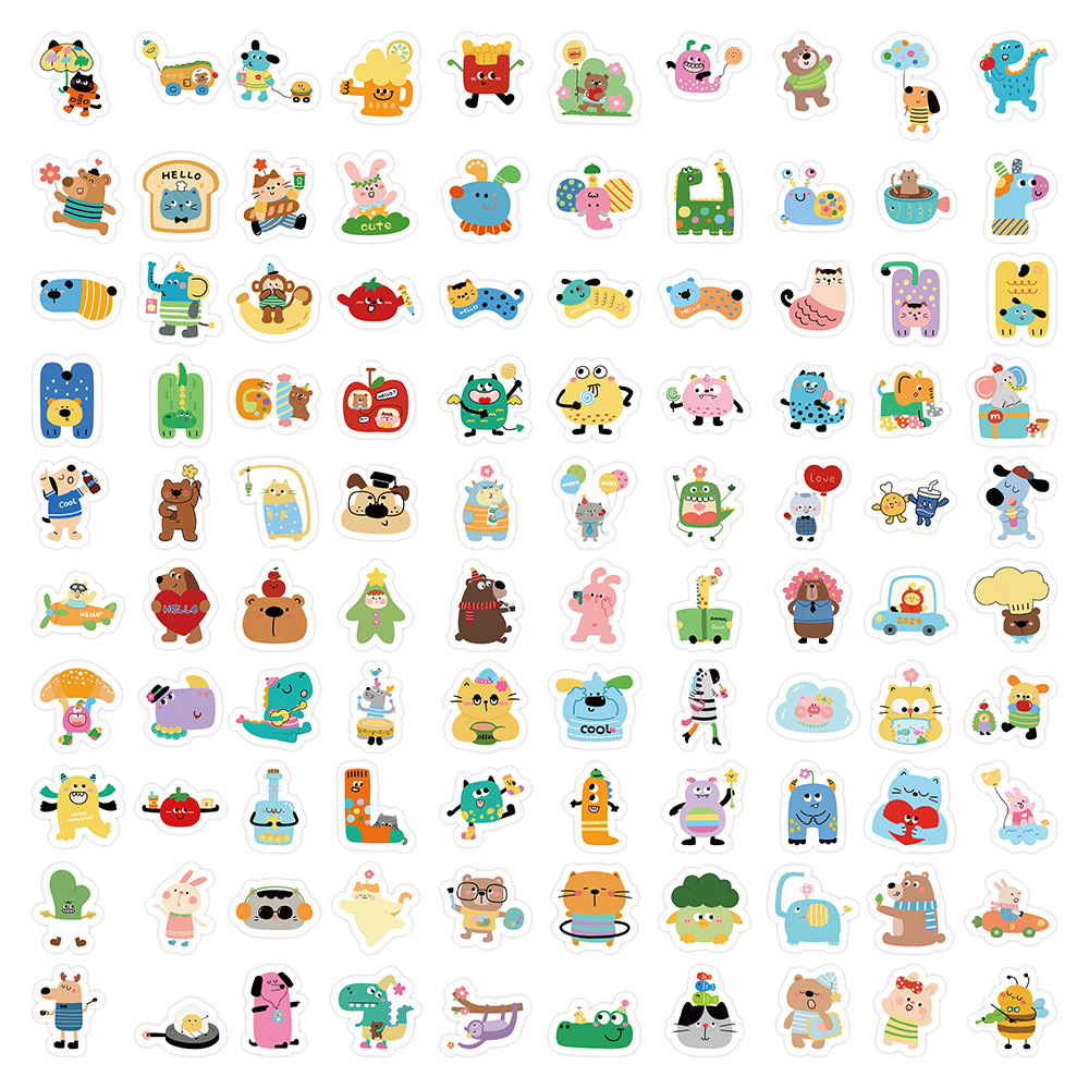 100 추상 동물 낙서 스티커 만화 창조적 인 장식 노트북 ipad 손 계정 DIY 스티커 도매