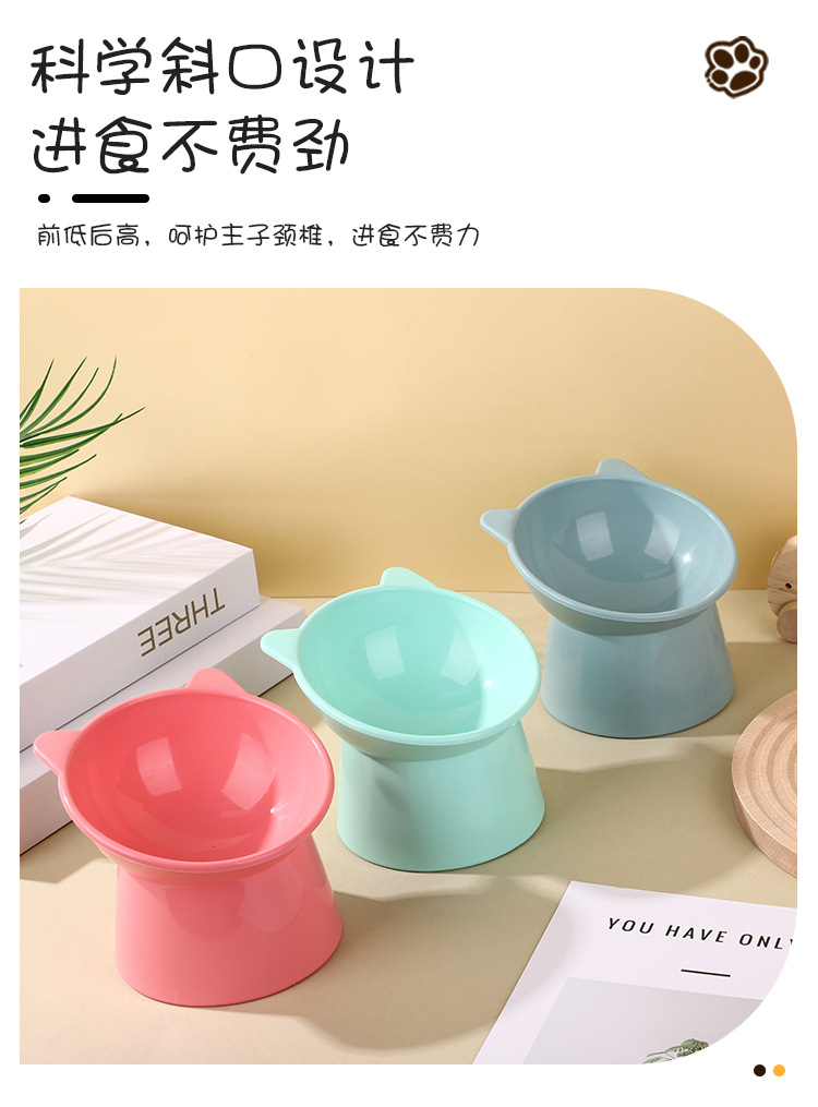 재고 북유럽 스타일의 높은 발 대각선 PP 소재 애완 동물 그릇 목 보호 미끄럼 방지 고양이 그릇 개 그릇 반대로 전복 높은 발 애완 동물