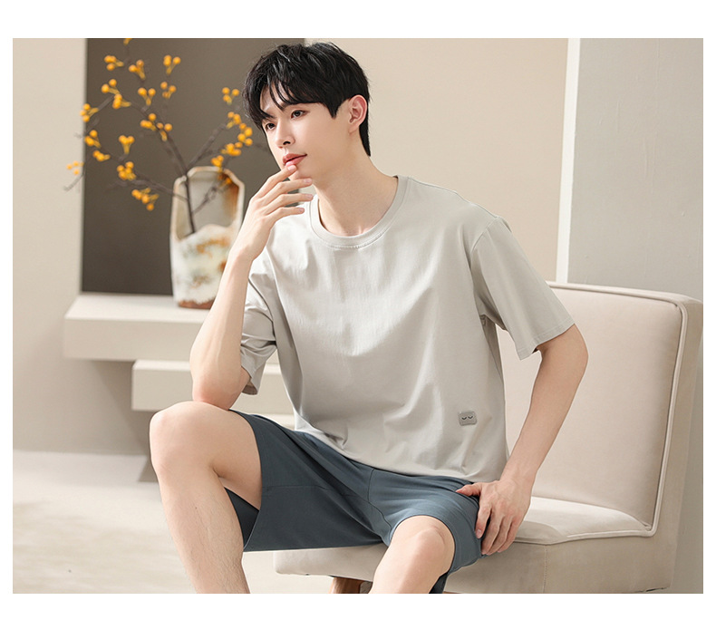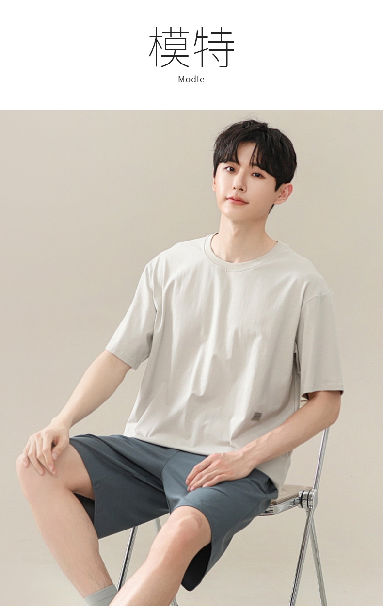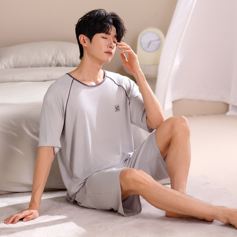 모달 남자 잠옷 여름 반팔 반바지 얇은 여름 시원한 느낌의 십대들은 외부 가정 옷을 입을 수 세트스토어 가기