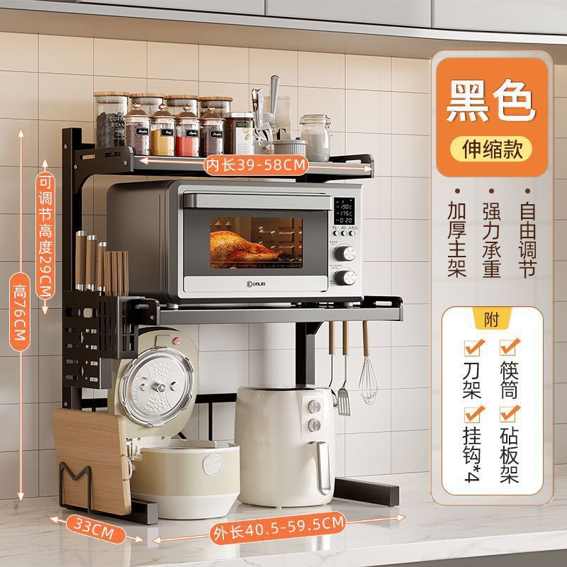 • [주방 스토리지 랙] 블랙 스타일 플래그십 [긴 높이 조절 가능] 더블 레이어 도마 랙