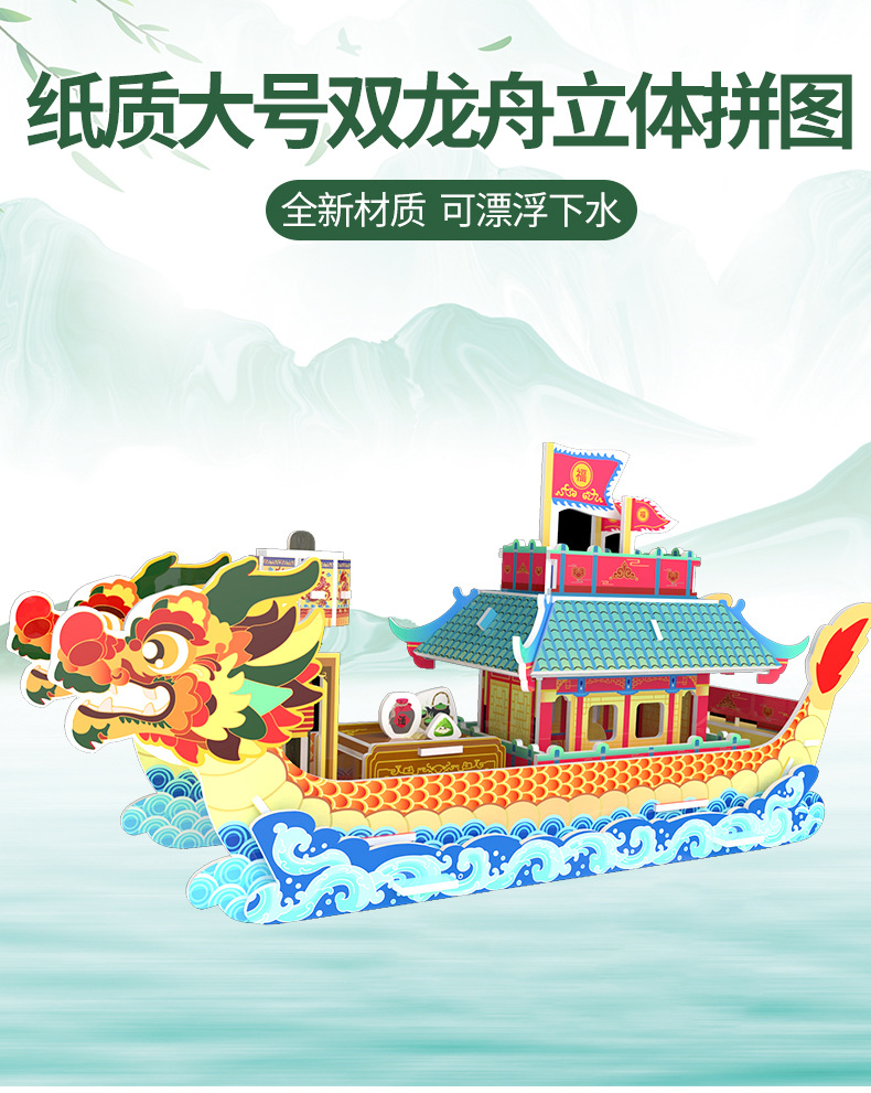 드래곤 보트 축제 종이 대형 더블 드래곤 보트 퍼즐 3d 모델 장난감 스테레오 퍼즐 손으로 삽입 한 스톨 도매스토어 가기