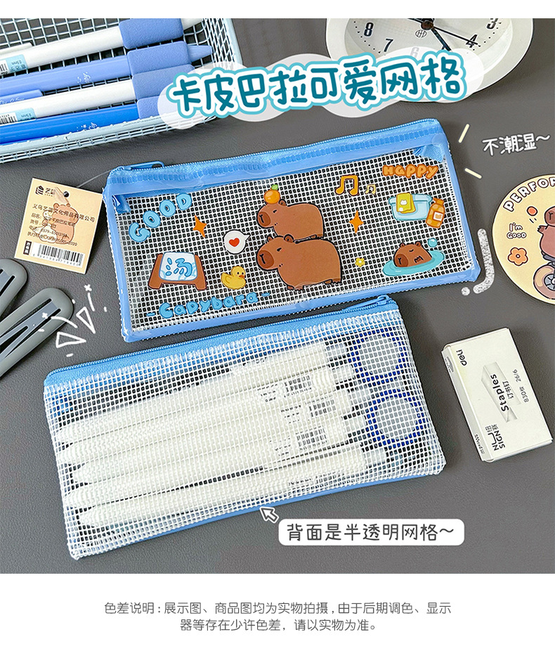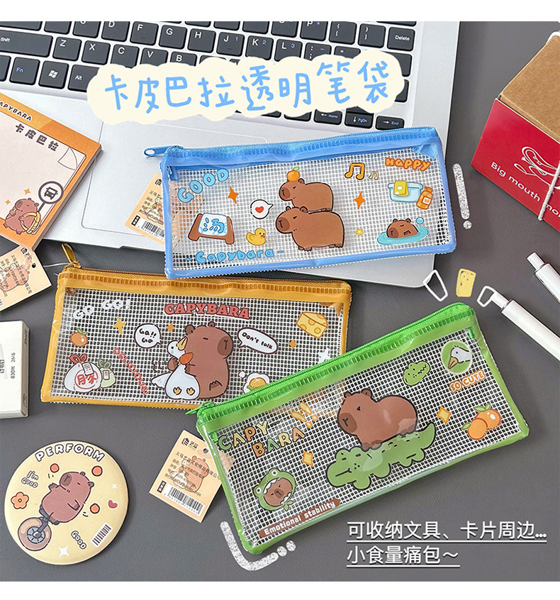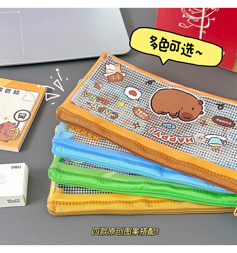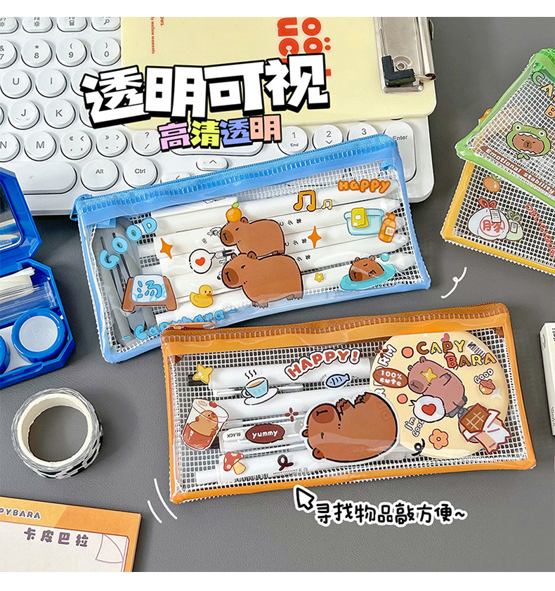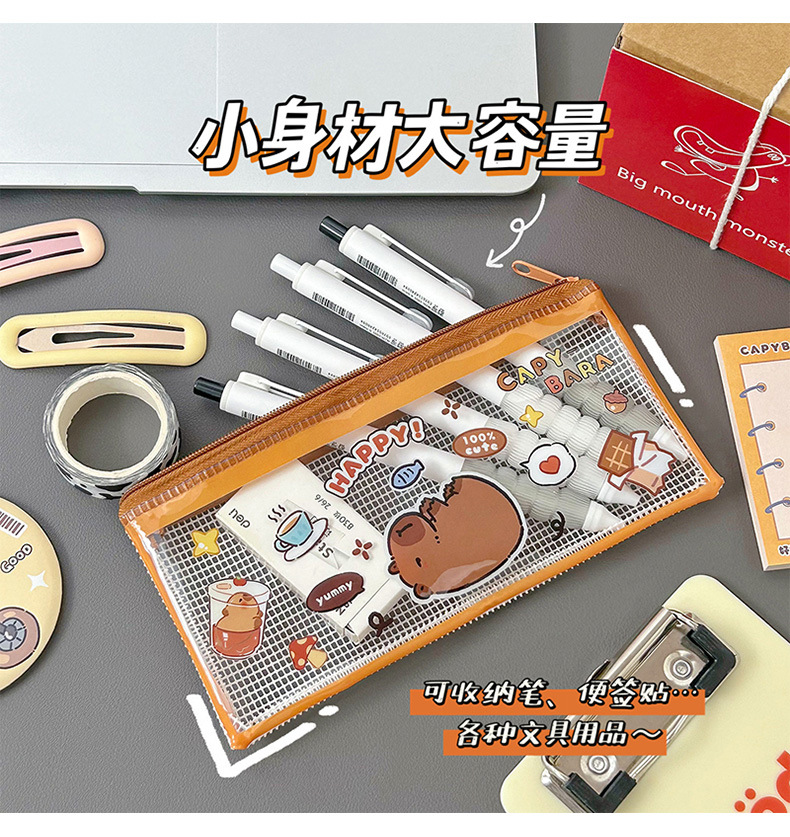 Capybara 메쉬 연필 케이스 Clove Capibala 학생 PVC 투명 문구 케이스 인 스타일 대용량 연필 케이스
