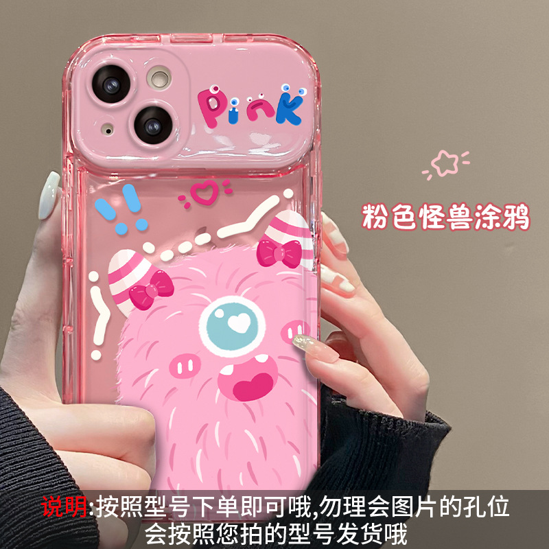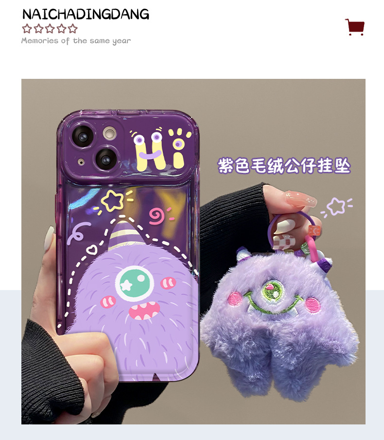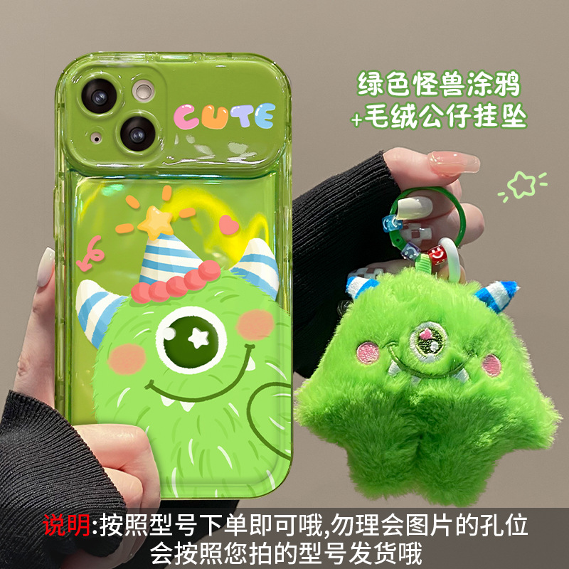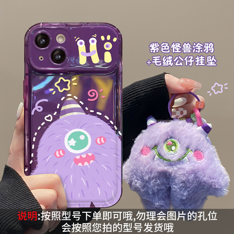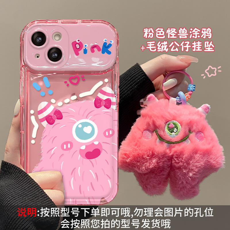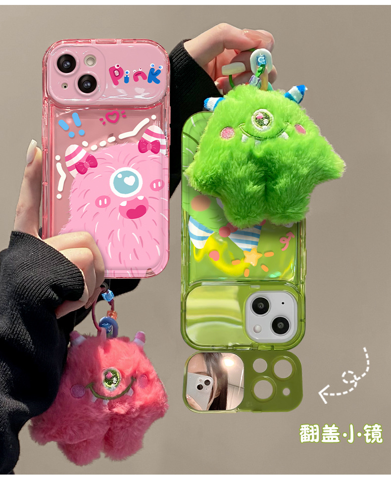 애플 15promax 전화 케이스 iPhone14/13 플러시 몬스터 펜던트 11/12 플립 미러 xs스토어 가기