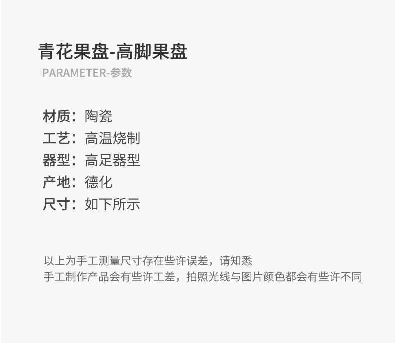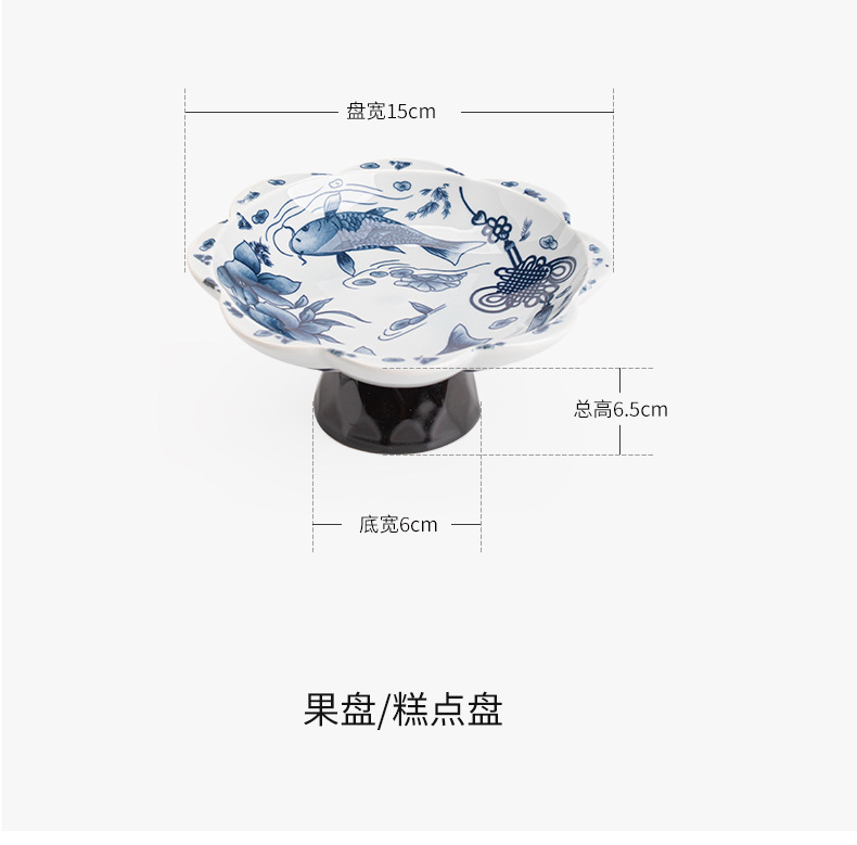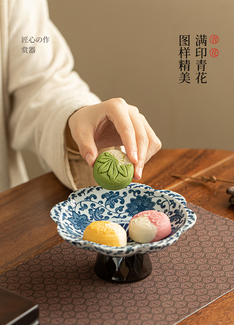 중국 스타일 파란색과 흰색 높은 발 상쾌한 접시 세라믹 차 액세서리 높은 발 복고풍 말린 과일 너트 가정용 과일 플레이트