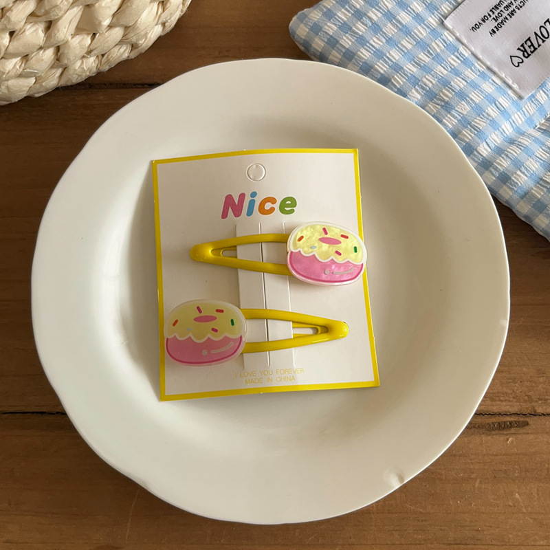 2 팩 귀여운 토스트 케이크 노란 오리 머리 로프 머리핀 조합 만화 재미있는 머리 반지 머리 로프 Bb 클립 헤어 액세서리스토어 가기