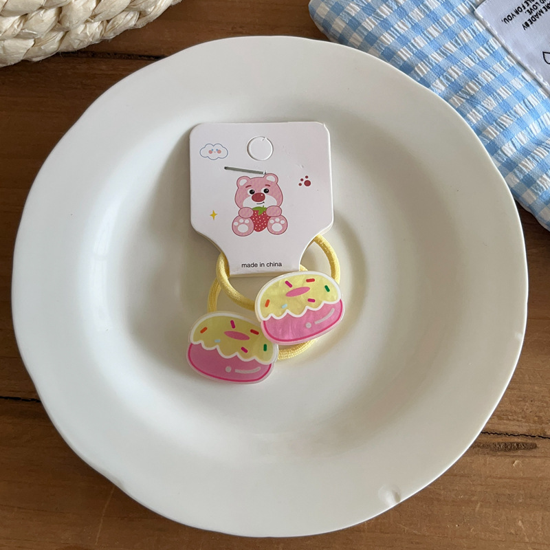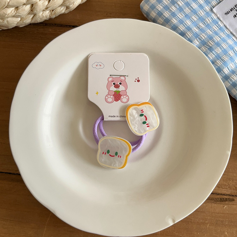 2 팩 귀여운 토스트 케이크 노란 오리 머리 로프 머리핀 조합 만화 재미있는 머리 반지 머리 로프 Bb 클립 헤어 액세서리