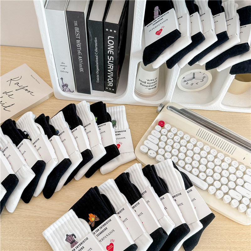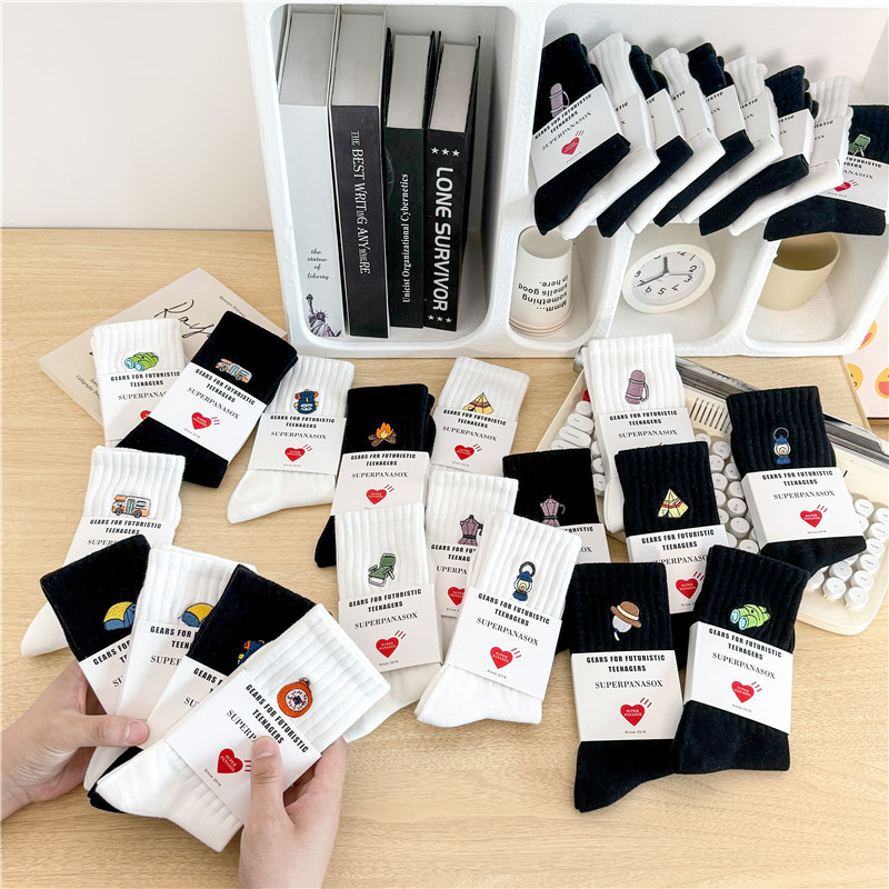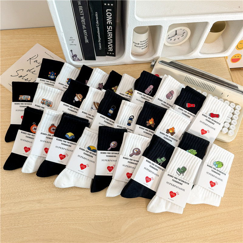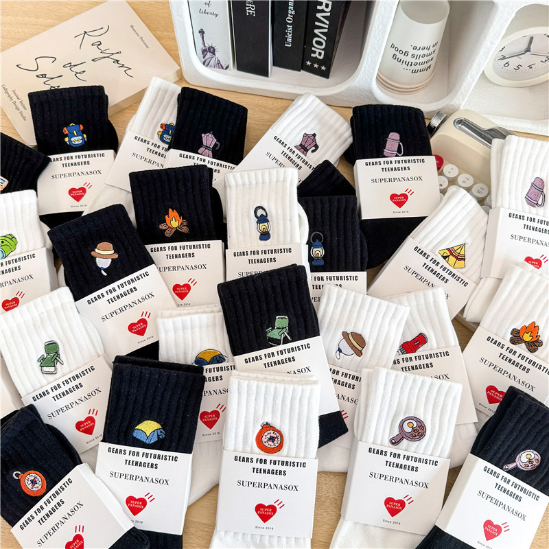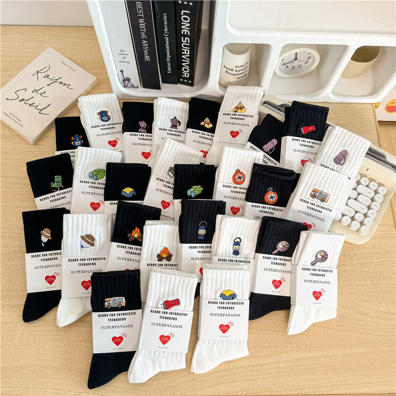 남성과 여성을위한 도시 소년 양말 거리 톤 미국 도파민 캠핑 중간 길이 양말 Ins 트렌디 하이 탑 스포츠 스타킹스토어 가기