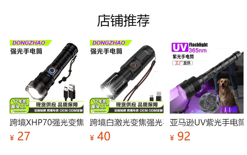 국경 백색 레이저 손전등 Type-C 충전 줌 장거리 알루미늄 합금 손전등 다기능 손전등스토어 가기