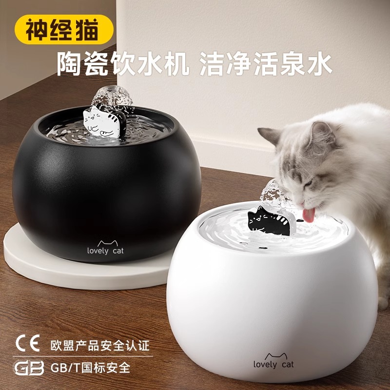애완 동물 안티 노크 비 젖은 입 마시는 물 공급 자동 순환 물 디스펜서 물 그릇 고양이 세라믹 물 디스펜서