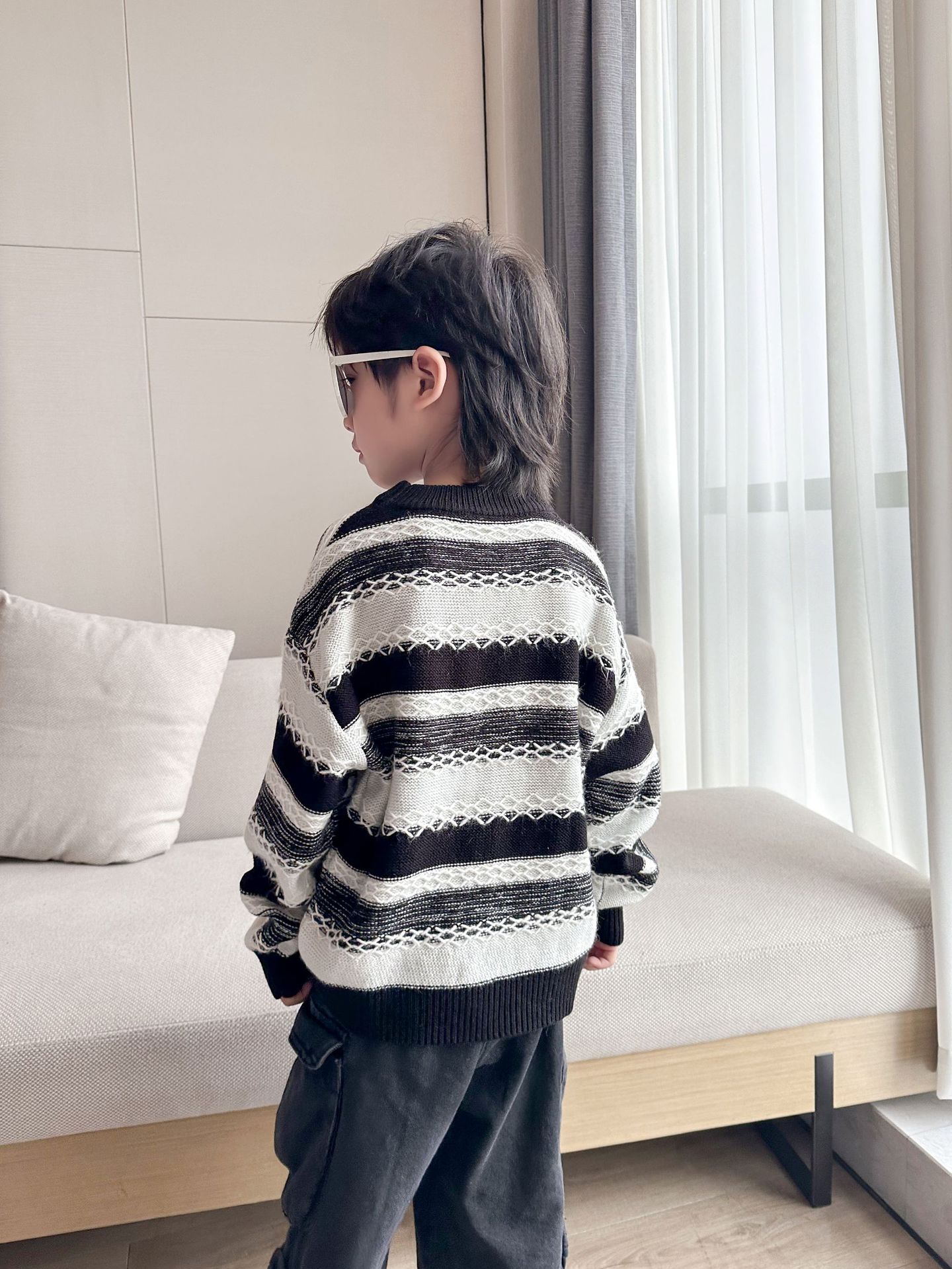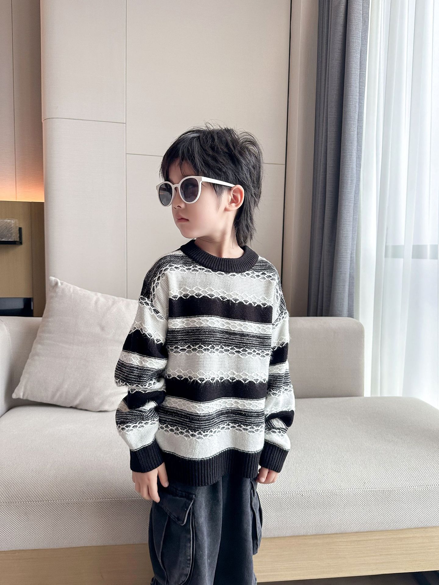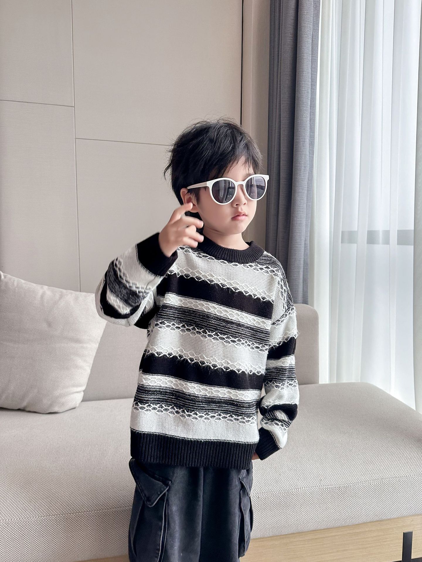 남학생 스웨터 스트라이프 어린이 솔리드 컬러 니트 풀오버 2024 겨울 새 잘 생긴 어린이 아우터 탑