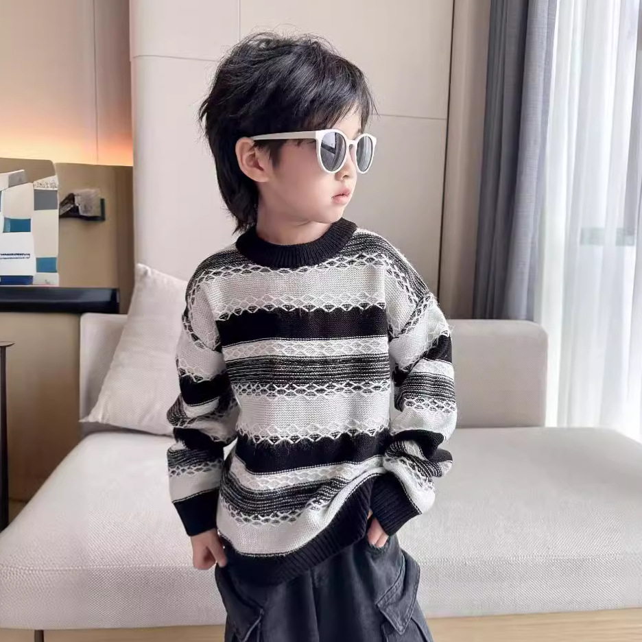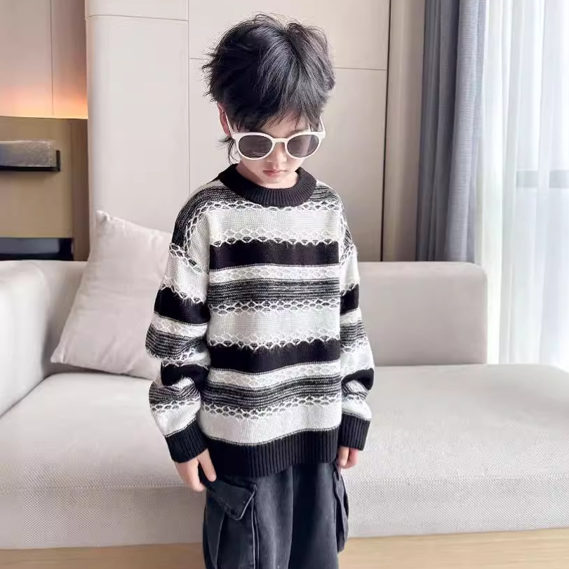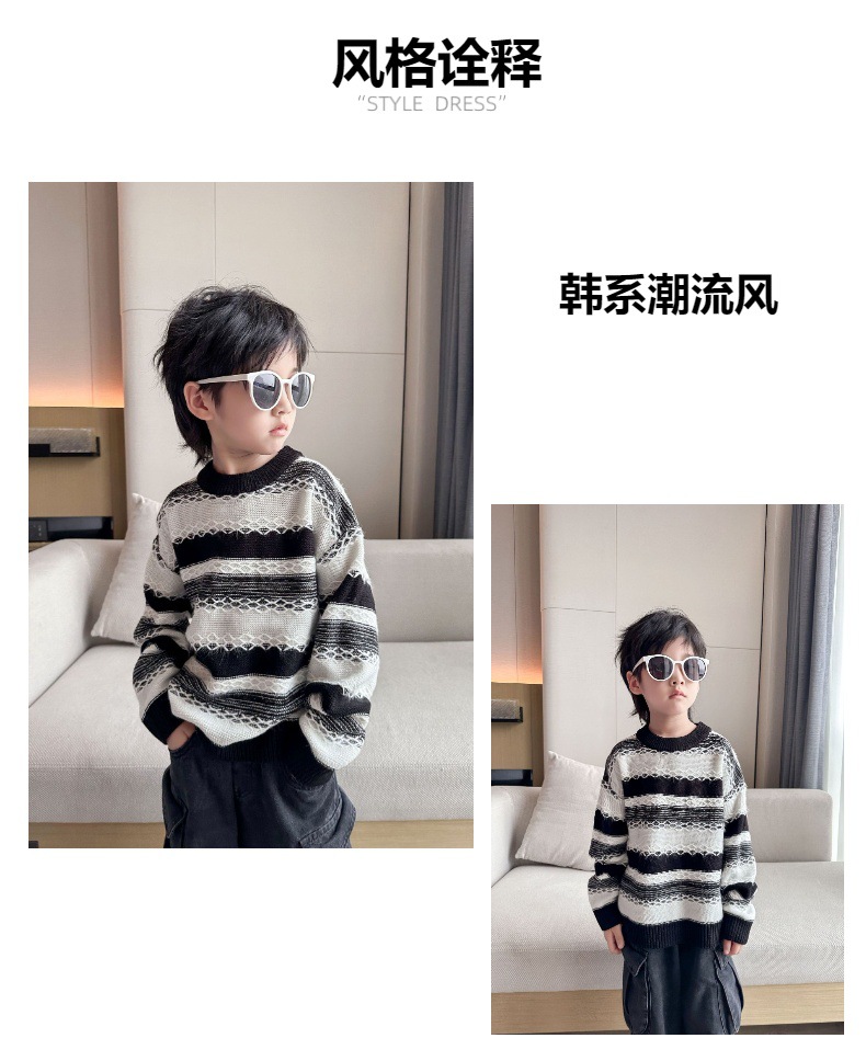 남학생 스웨터 스트라이프 어린이 솔리드 컬러 니트 풀오버 2024 겨울 새 잘 생긴 어린이 아우터 탑스토어 가기