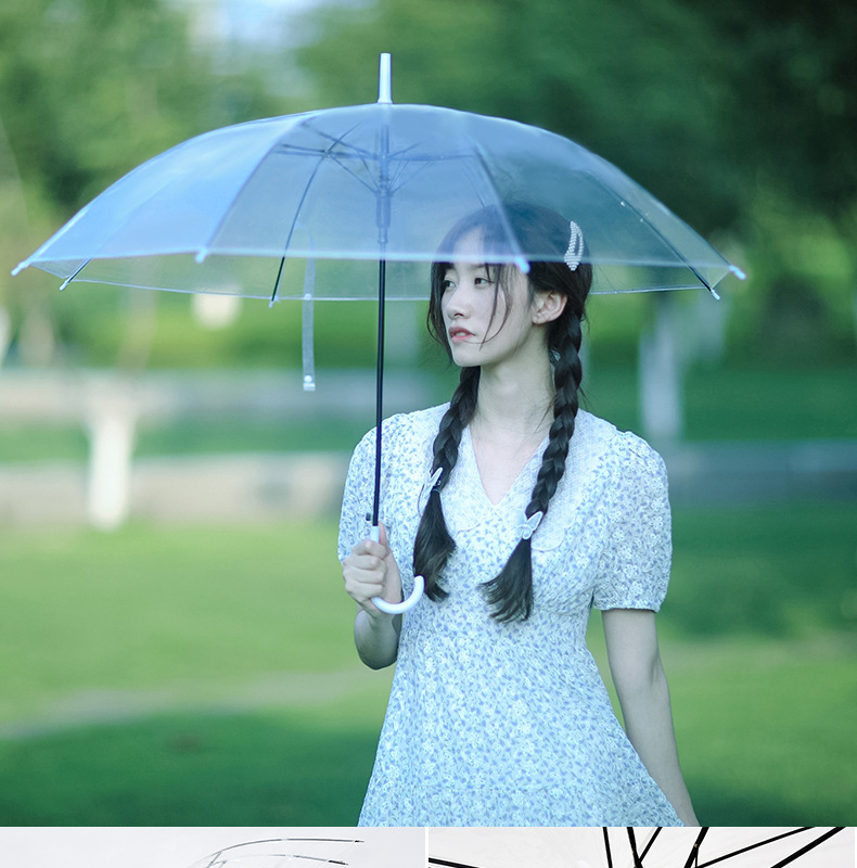투명 우산 일회용 플라스틱 우산 자동 투명 우산 긴 손잡이 고급스러운 디자인의 햇빛 및 비 겸용 우산스토어 가기