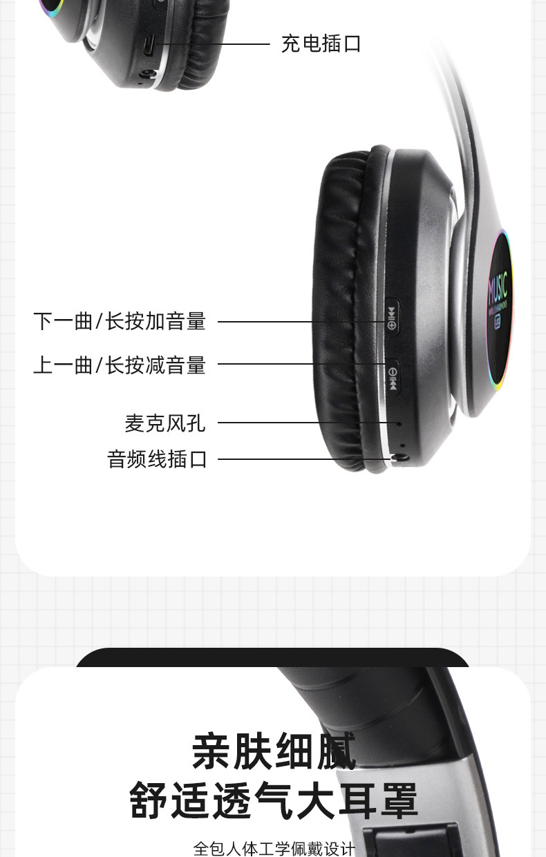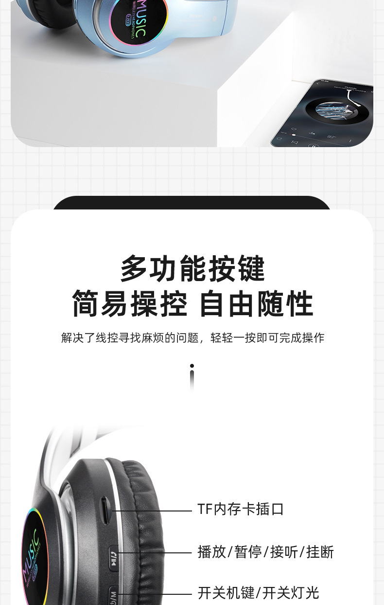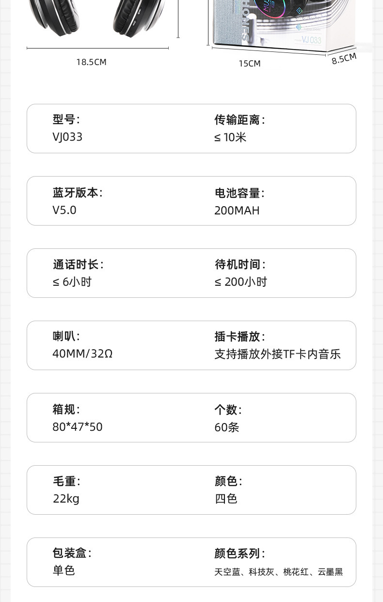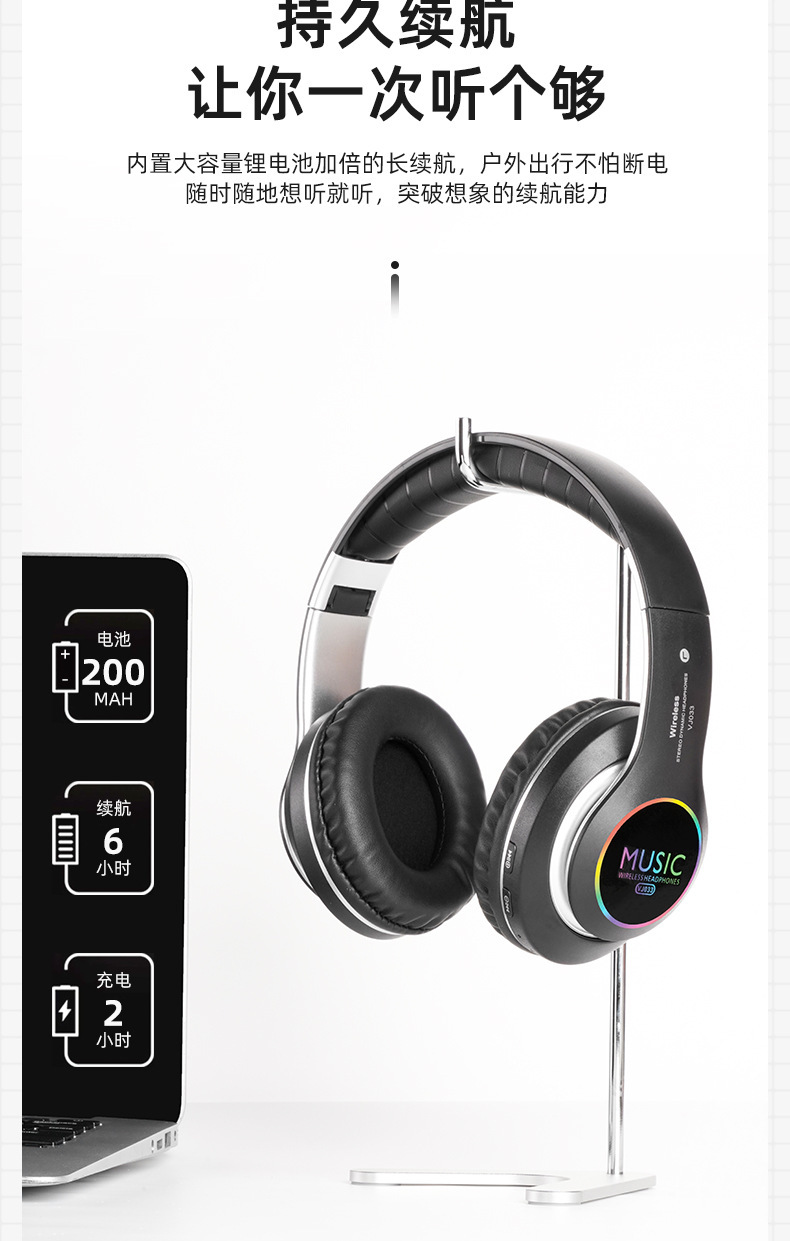 국경 간 폭발 VJ033 헤드셋 스포츠 헤드셋 LED 다채로운 빛나는베이스 게임 무선 블루투스 헤드셋스토어 가기