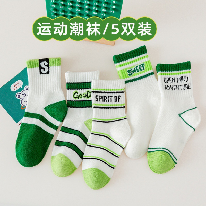 어린이 양말 가을과 겨울 중간 튜브 소년 유행 편지 중간 튜브 양말 소년 스포츠 면 양말 학생 양말 도매