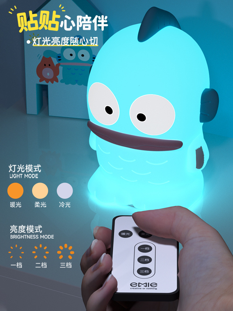 Sanrio 반어인 Hanton 팻 라이트 야간 조명 실리콘 어린이 생일 선물 침대 옆 램프 분위기 광대 물고기스토어 가기