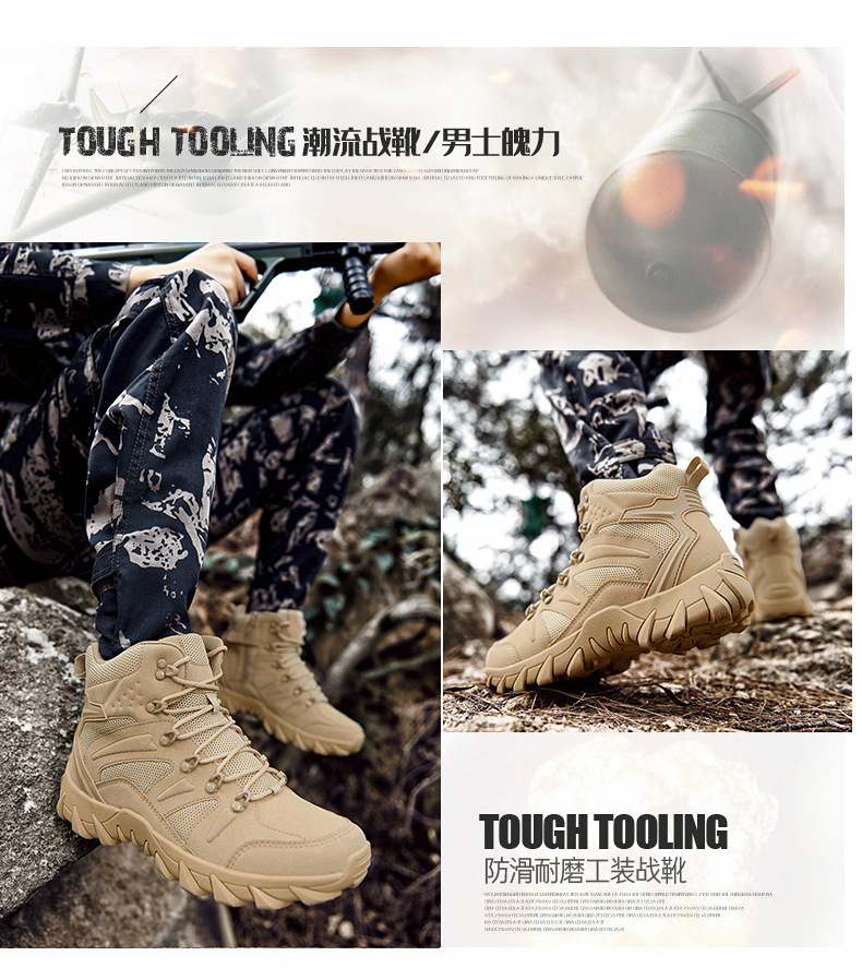 공장 재고 통기성 미끄럼 방지 남성 프리 사이즈 하이 탑 수출 재고 비스코스 신발 노란색 플랫 힐 하이킹 신발 전투 부츠스토어 가기
