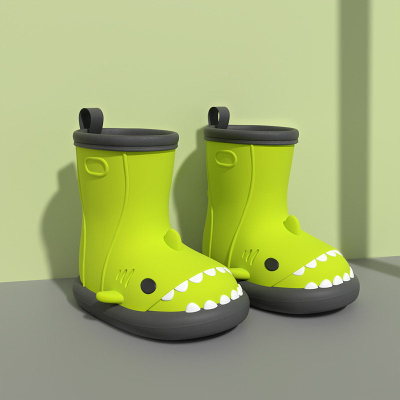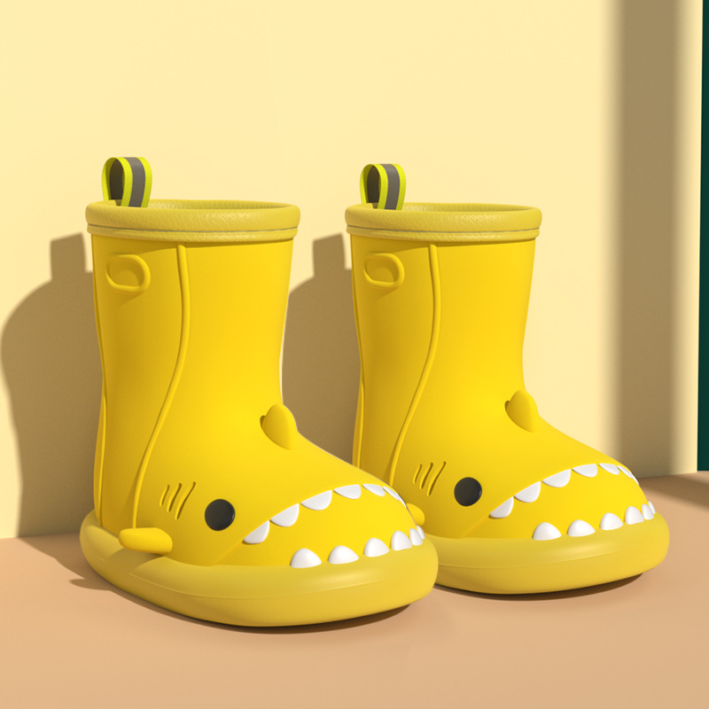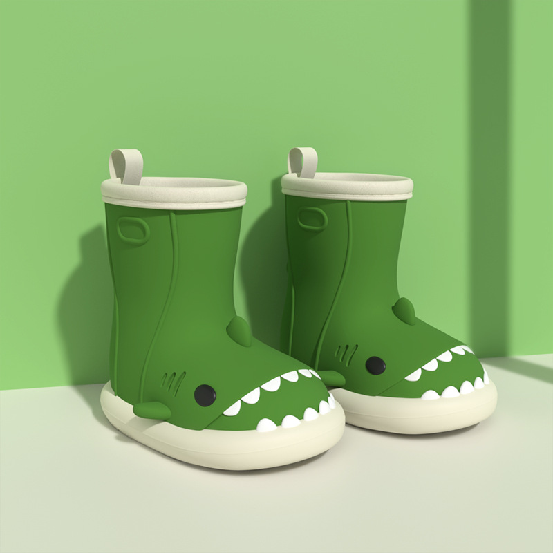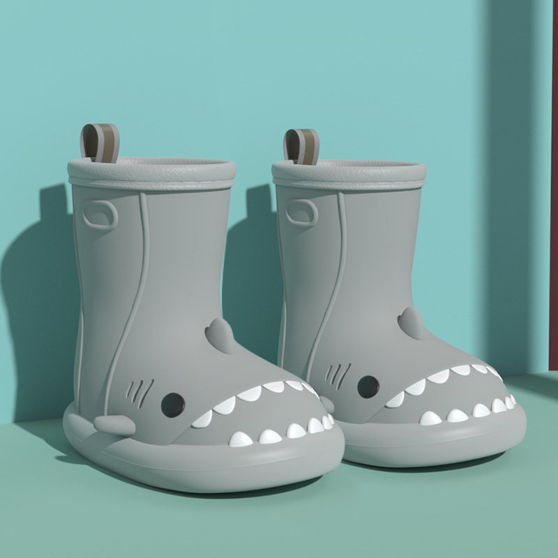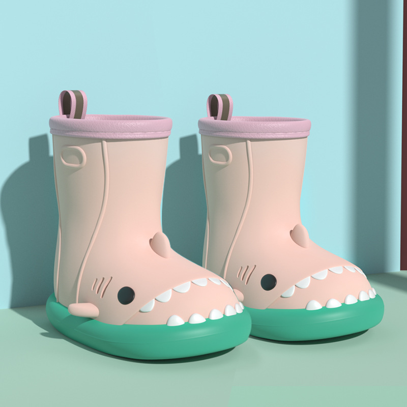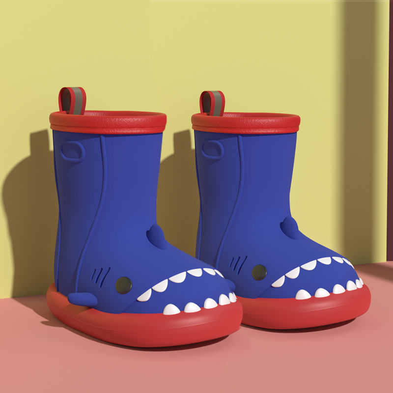 상어 비 부츠 어린이 여름 미끄럼 방지 부드러운 바닥 어린이 만화 어린이 중간 배럴 비 부츠 소년을위한 부모-자식 물 신발