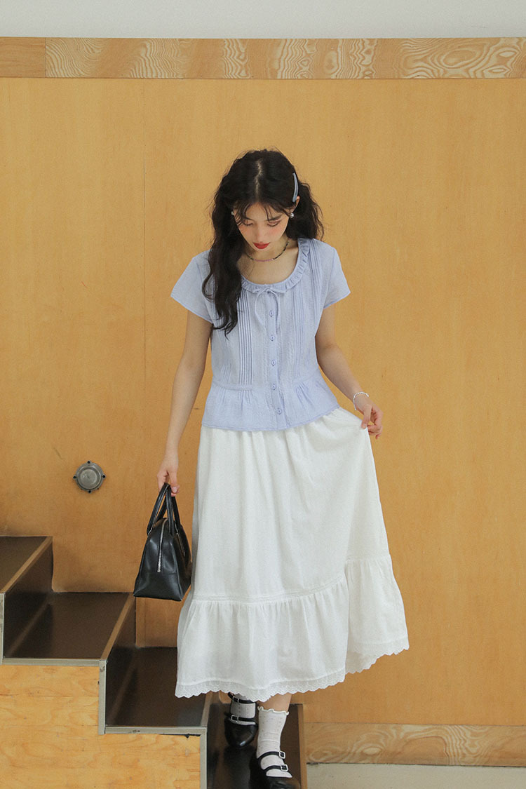 2024 년 여름 새로운 프랑스 예술적 모리 높은 허리 슬리밍 요정 화이트 스커트 여성 A-라인 미디 원피스스토어 가기