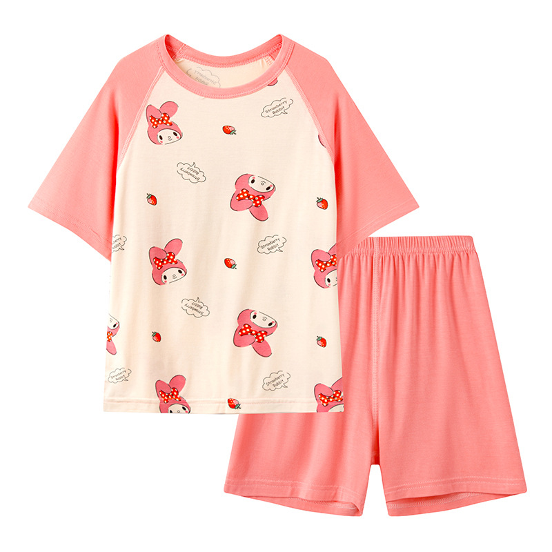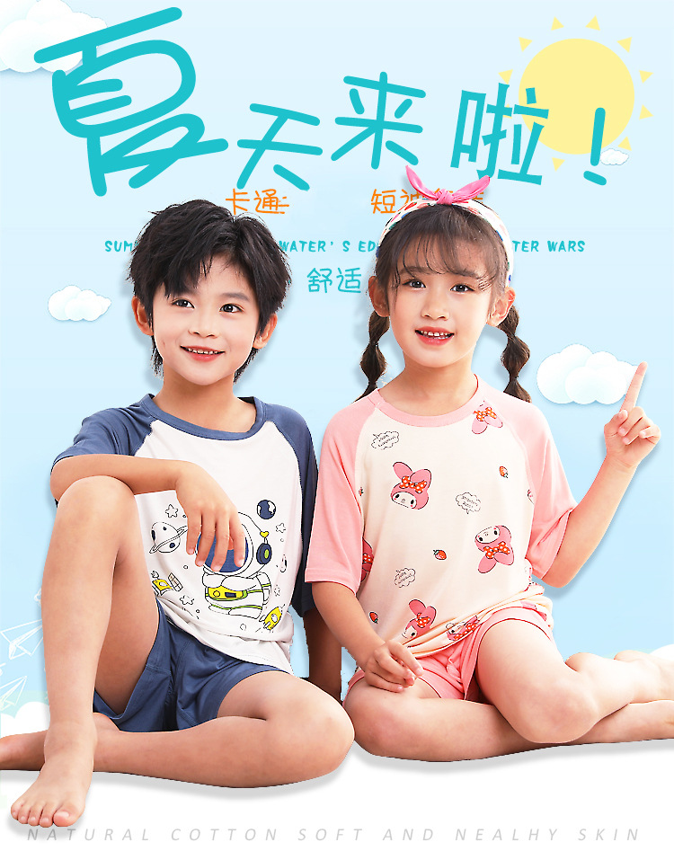 여름 아이스 실크 어린이 잠옷 세트 소년 여름 얇은 반팔 반바지 에어컨 홈 옷 소년 소녀 잠옷스토어 가기