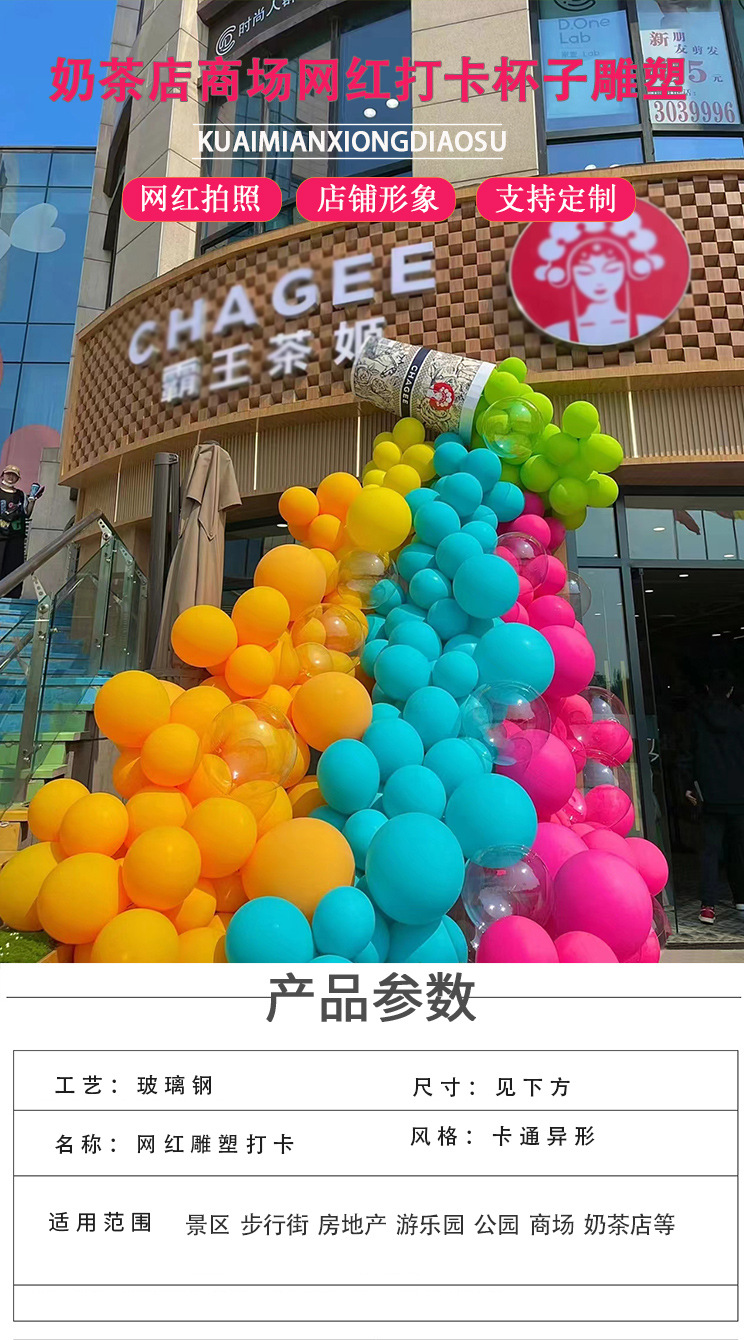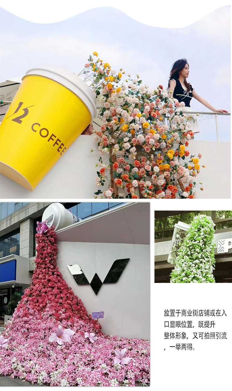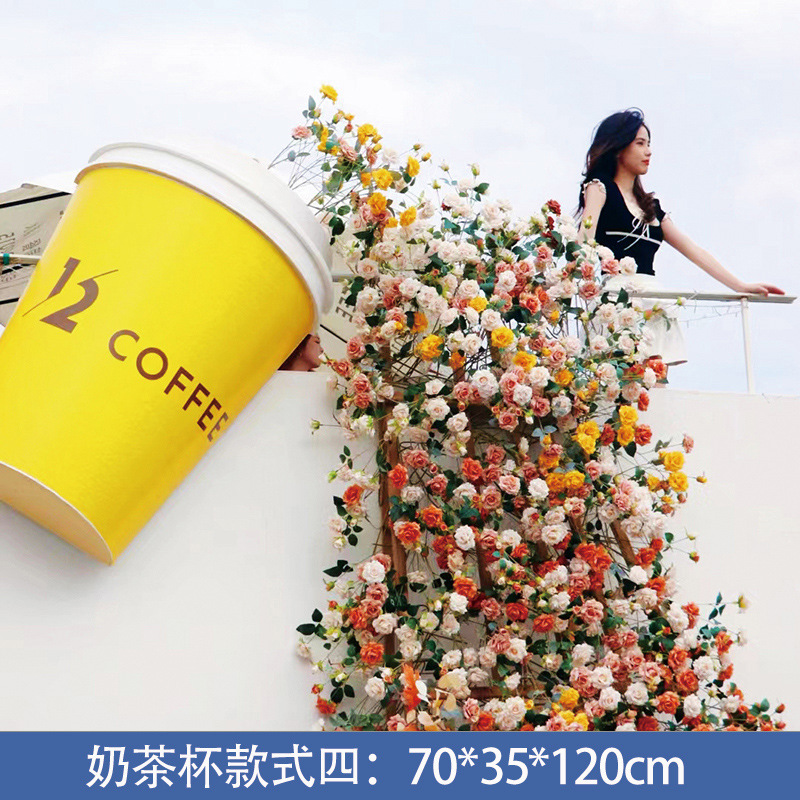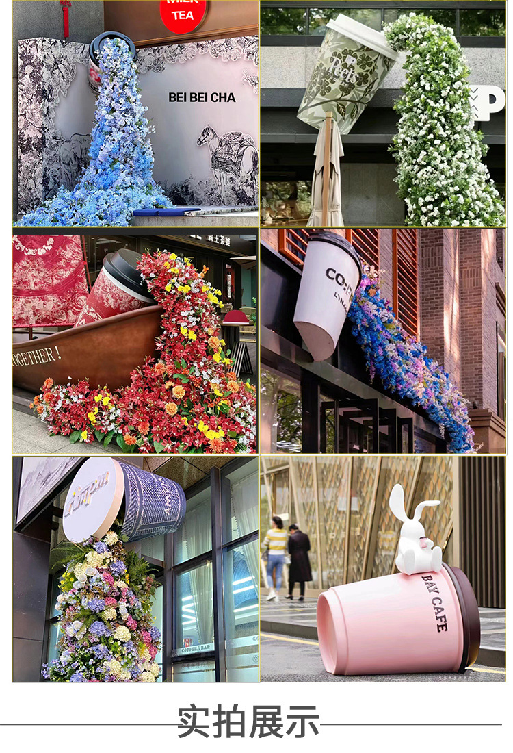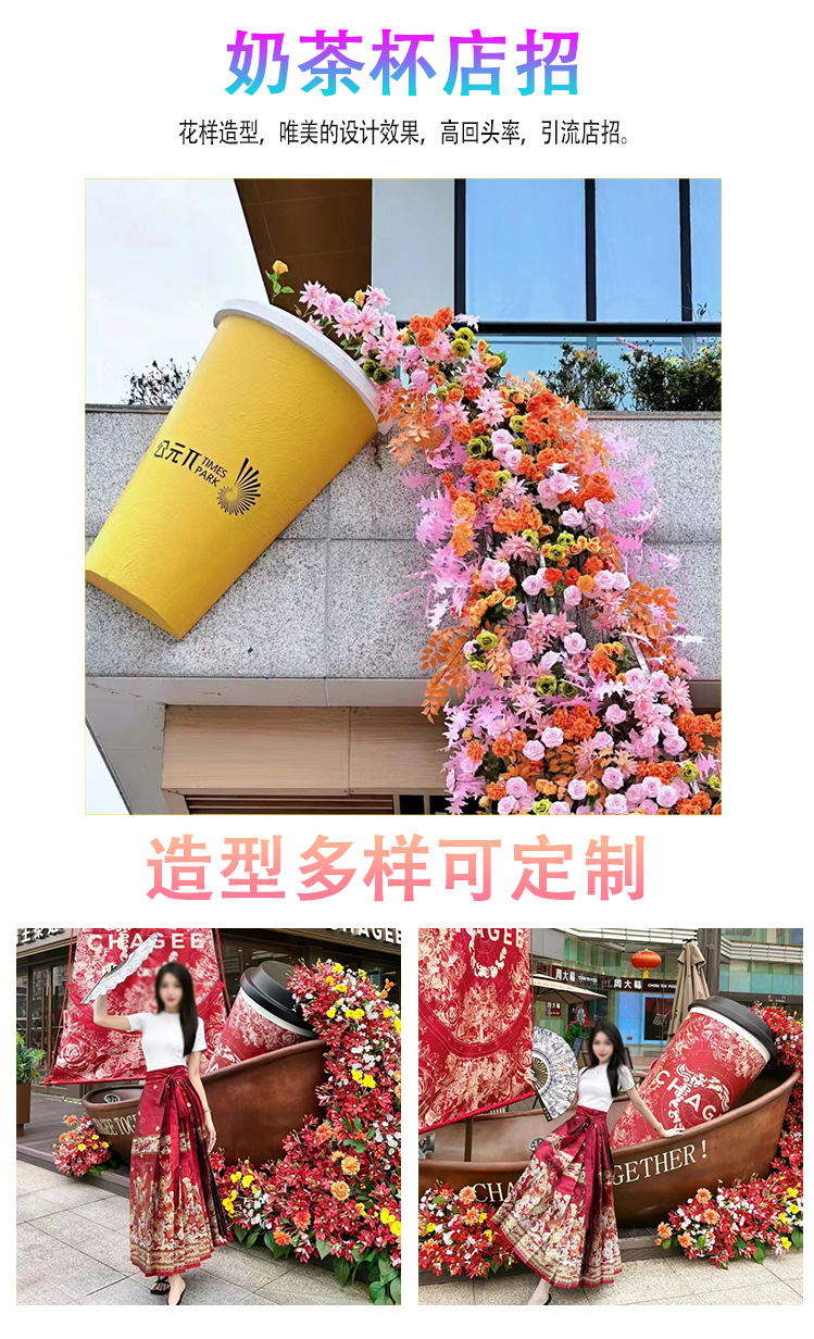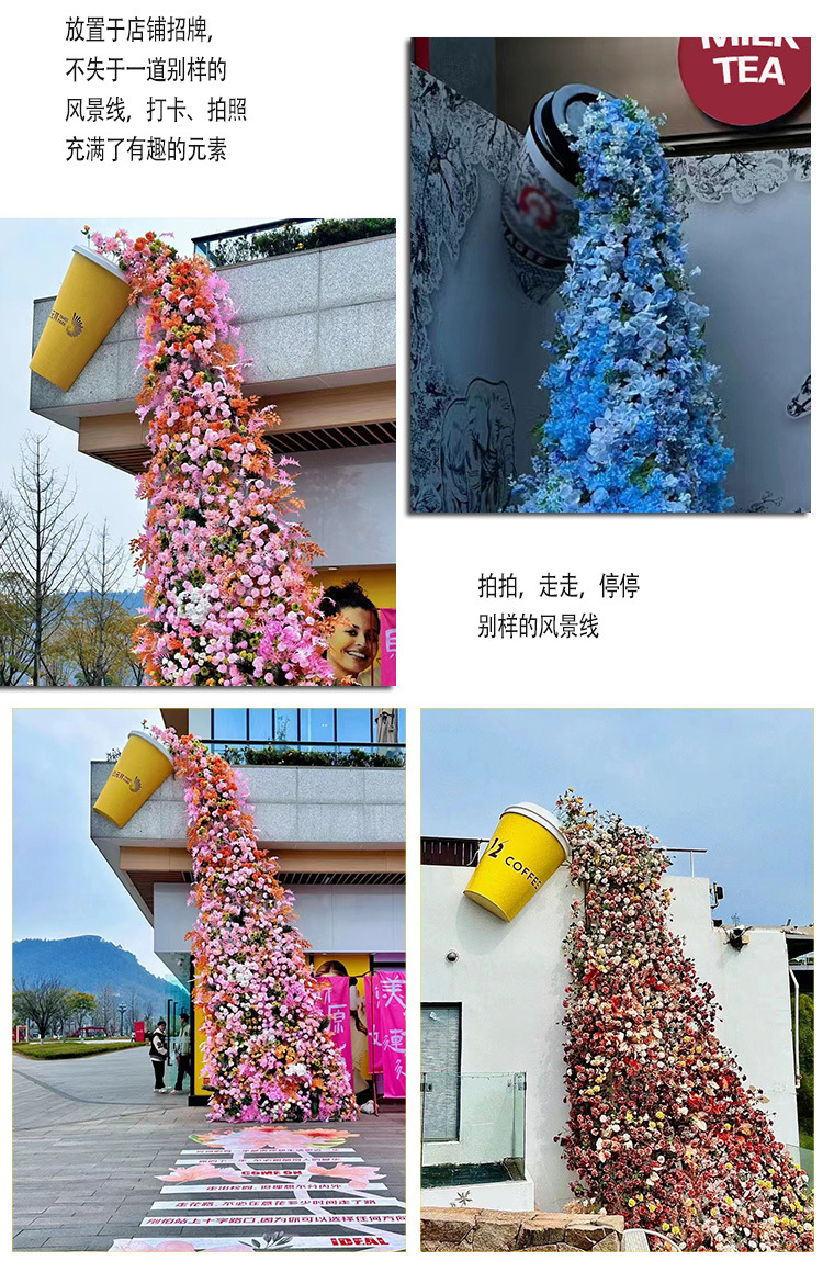 야외 시뮬레이션 우유 차 컵 폭포 꽃 벽 그물 빨간 펀치 대화 형 장치 쇼핑몰 아름다운 장면 장식 장식품스토어 가기