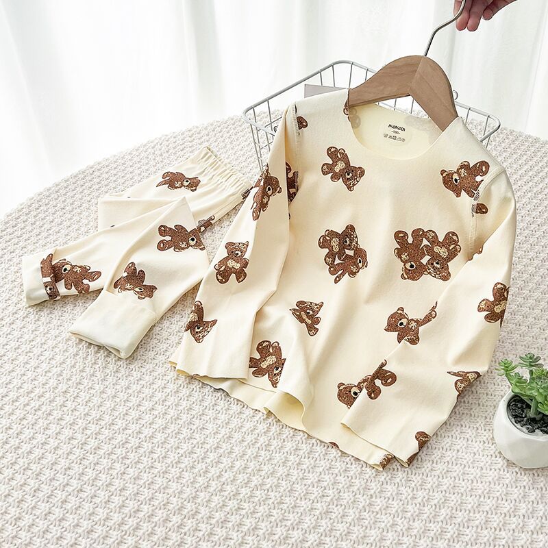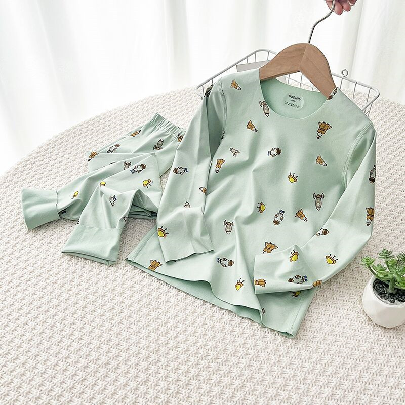 어린이 열 속옷 클래스 홈 의류 원활한 긴 소매 둥근 목 세트 만화 인쇄베이스 셔츠 머리카락 세대스토어 가기