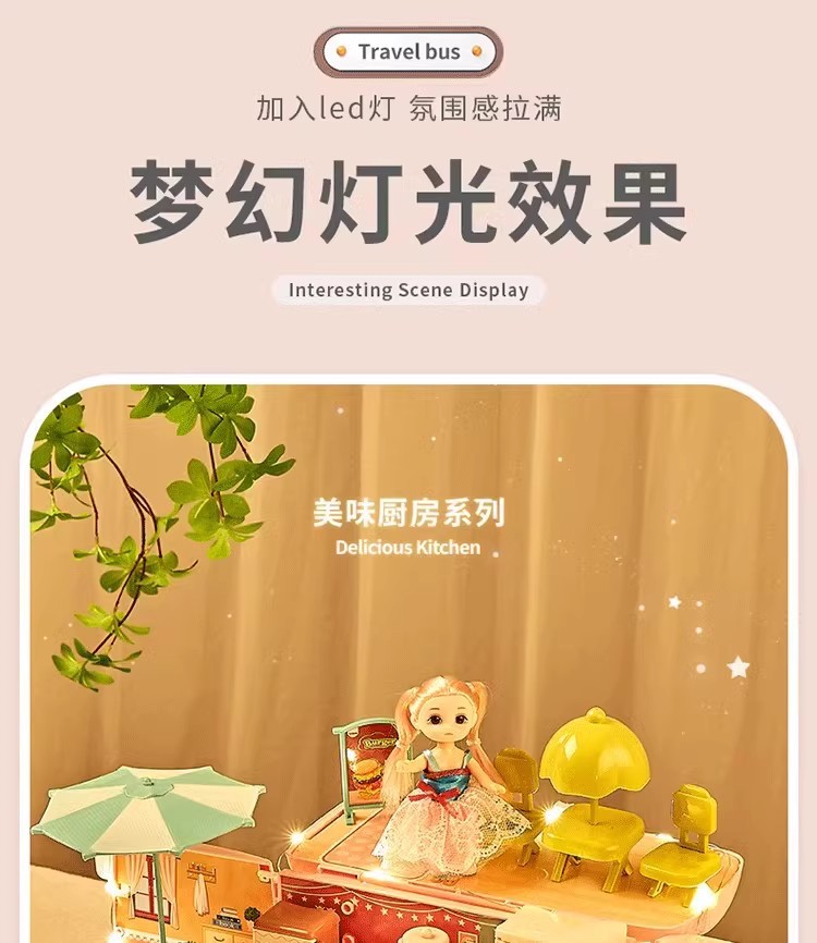 어린이 놀이집 가구 스타일 조명 소녀 조립식 오두막 장식품 교육용 블록 장난감 크로스보더 장면
