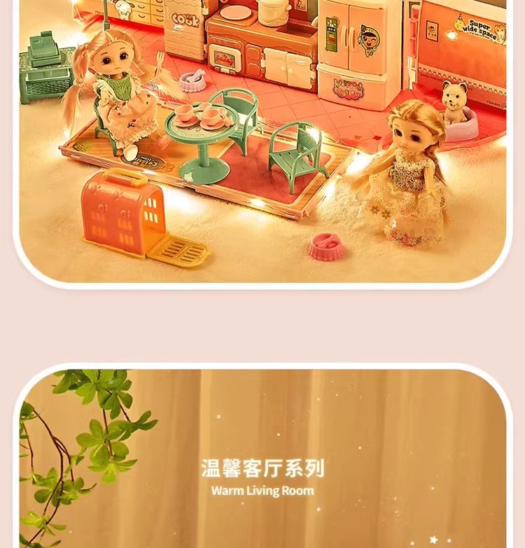 • 【조명 버전】 아늑한 거실 테마 - 【공주 2명 + LED + 강아지 2마리 (컬러 박스 + 이커머스 박스) 대량 구매 시 가격 협의 가능】