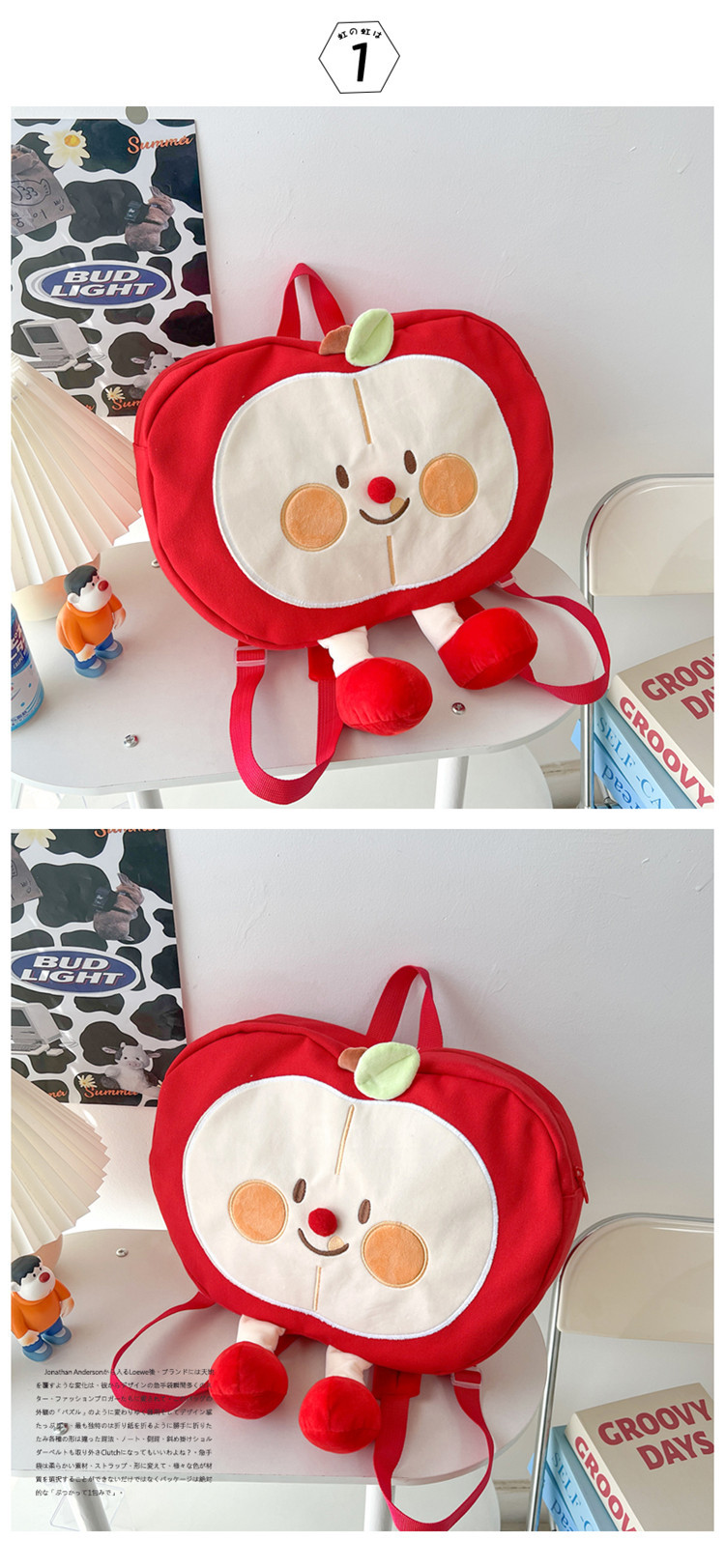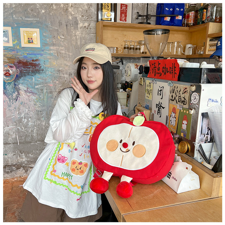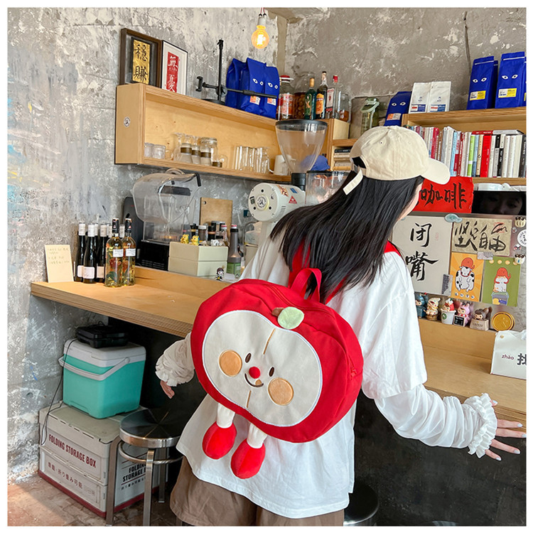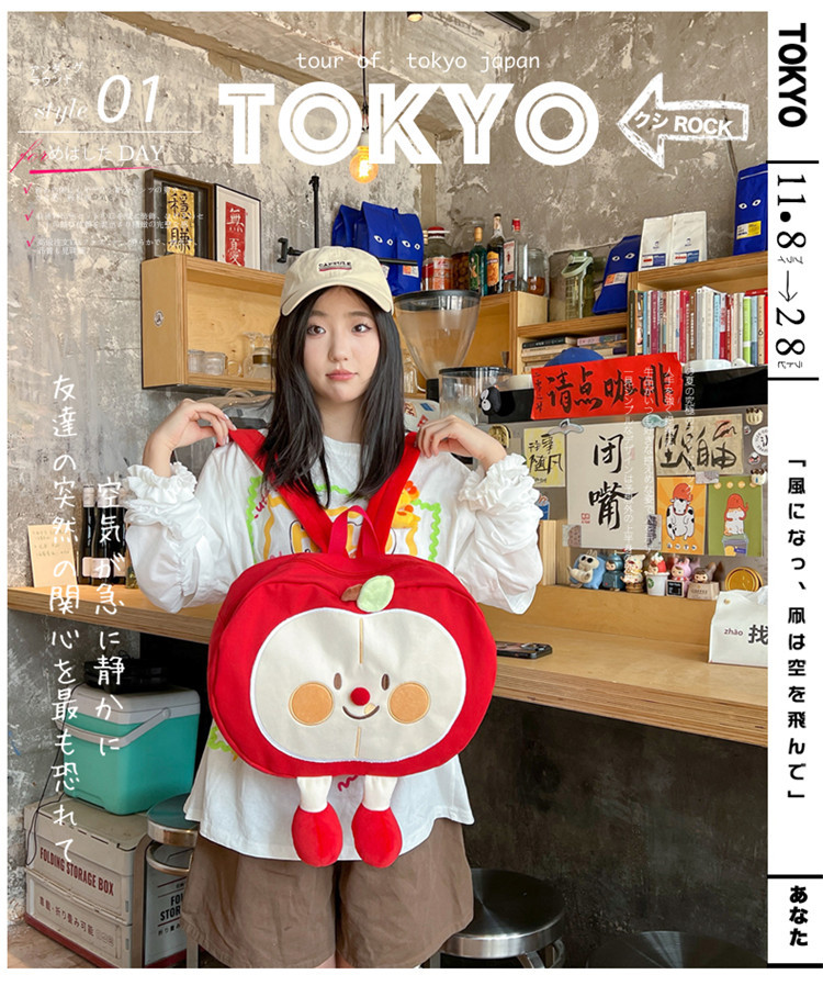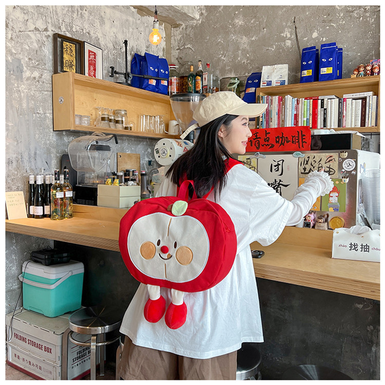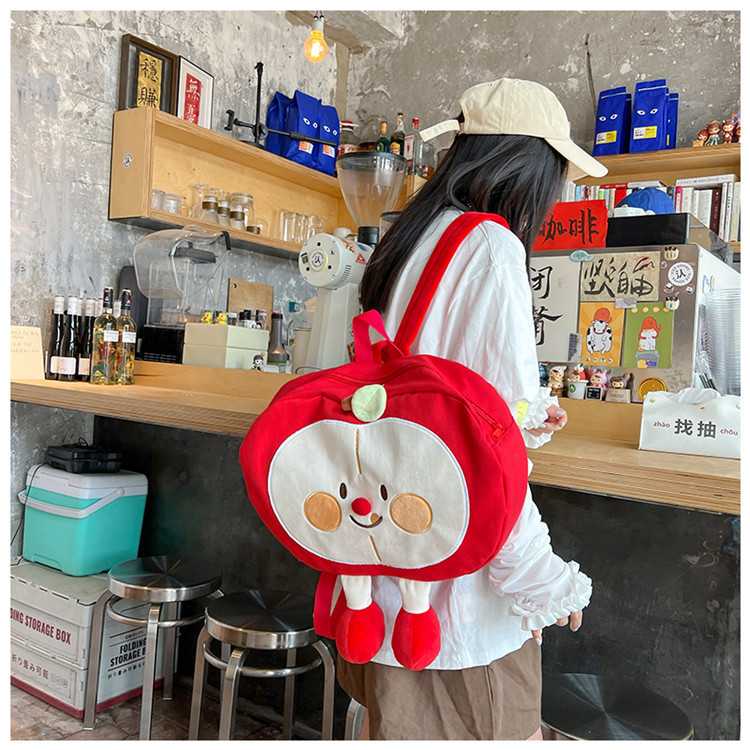 가방 2024 새로운 귀여운 만화 과일 캔버스 배낭 중학교 고등학교 학생 소프트 소녀 배낭스토어 가기