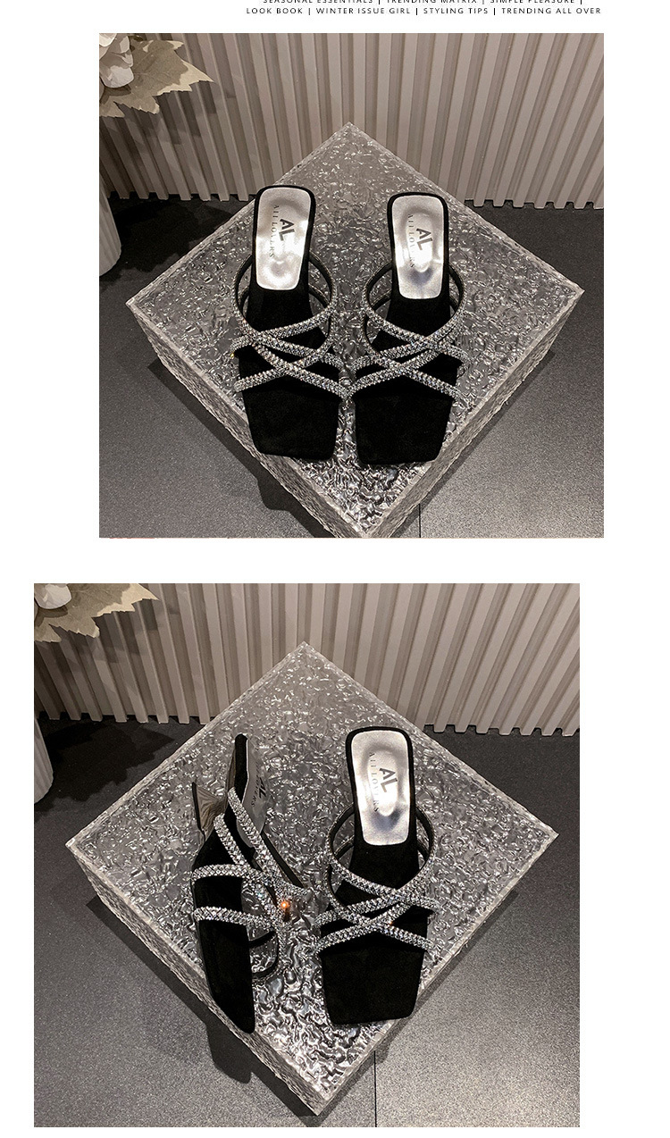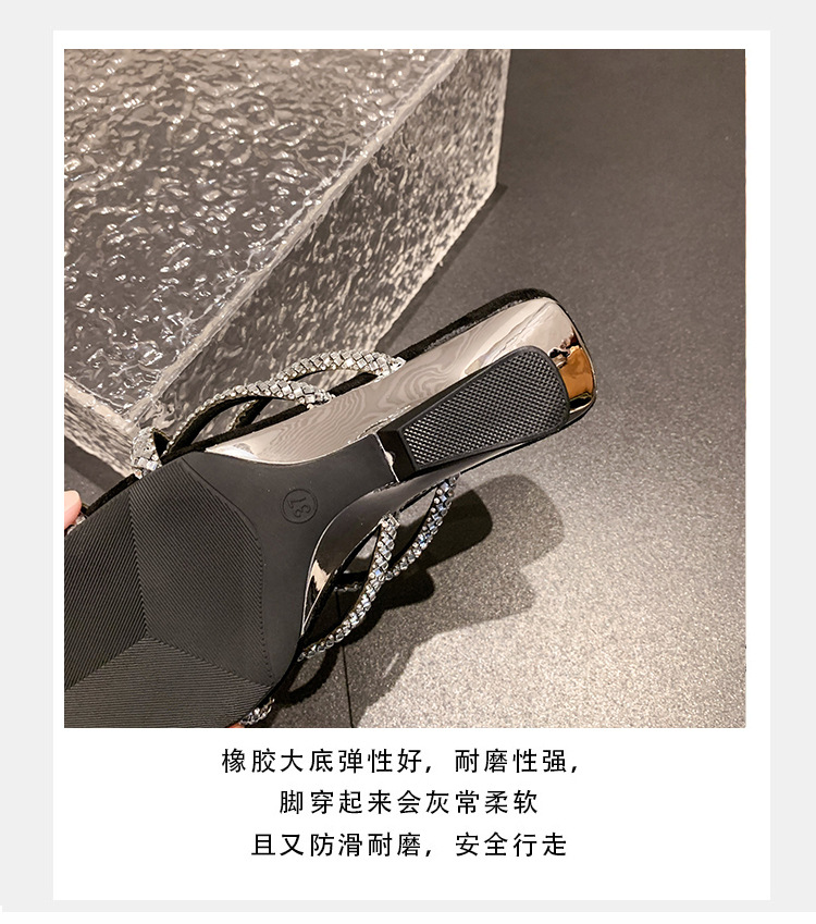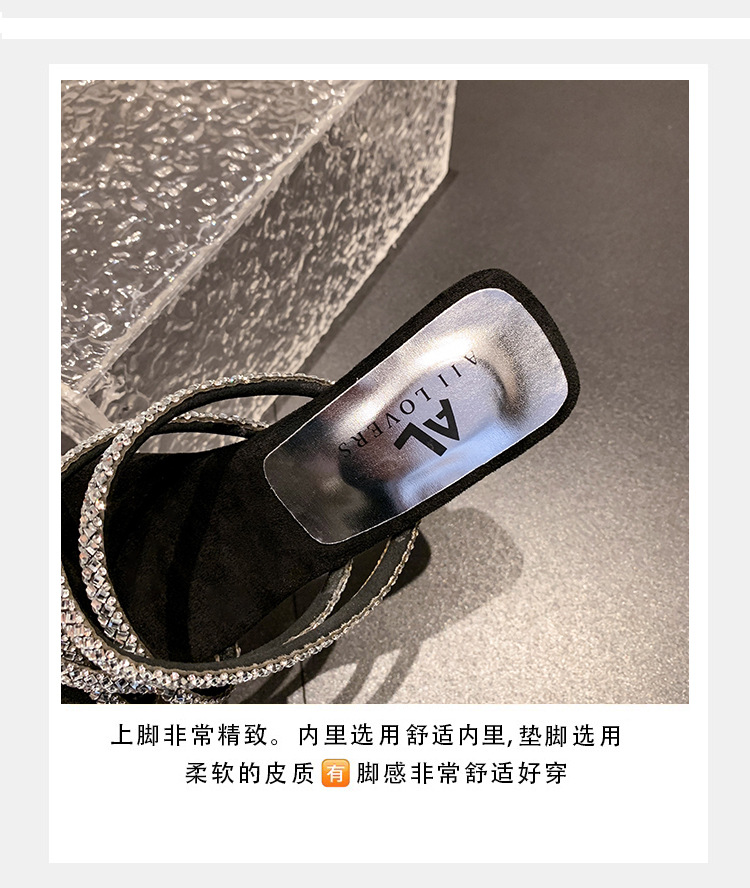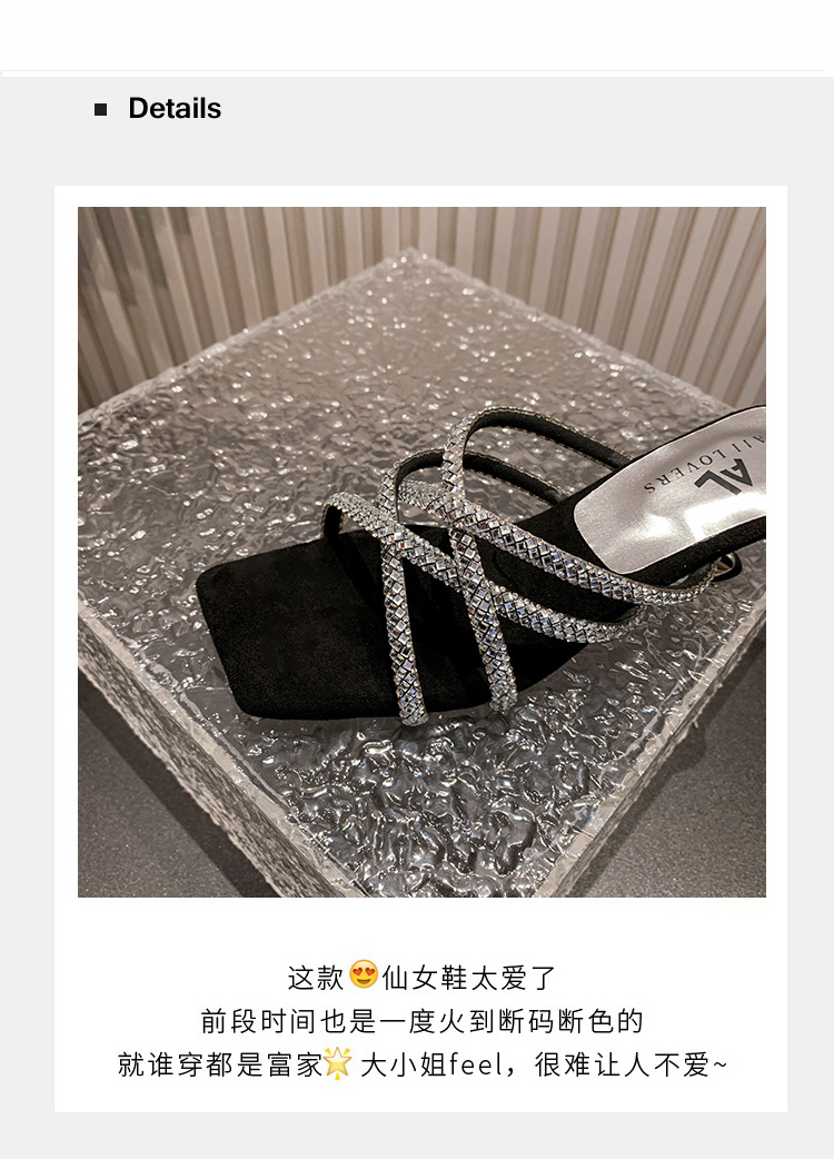 프랑스 스타일 두꺼운 힐 올 매치 실버 샌들 페어리 아우터웨어 2024 새로운 여름 우아한 스커트 라인스톤 샌들스토어 가기