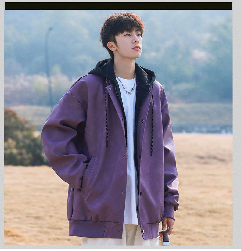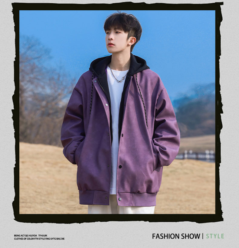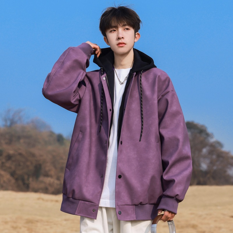 IZEXX 패션 브랜드 가짜 2 층 후드 재킷 코트 하이 스트리트 에비에이터 칼라 재킷 캐주얼 보이즈 재킷스토어 가기