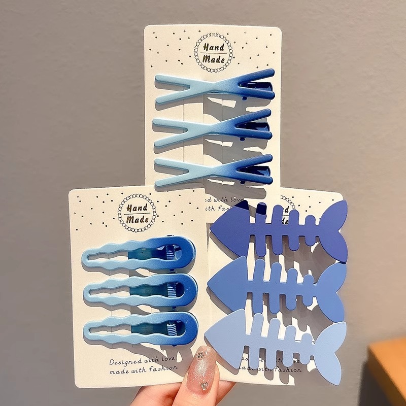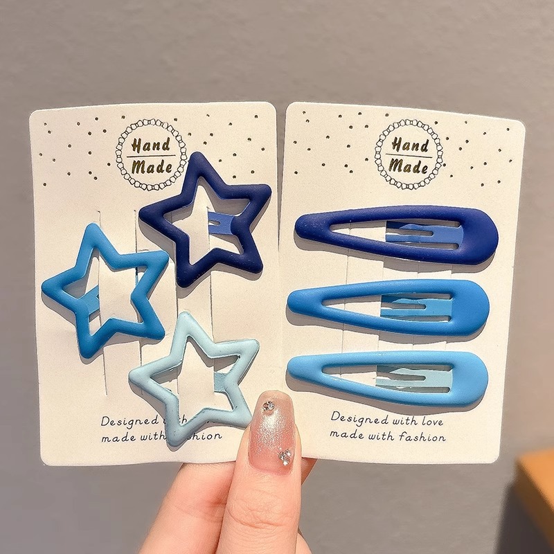 클라인 블루 스타 헤어핀 여성의 여름 사이드 프린지 클립 프론트 프린지 헤어 트레이너리스 덕빌 클립 머리핀
