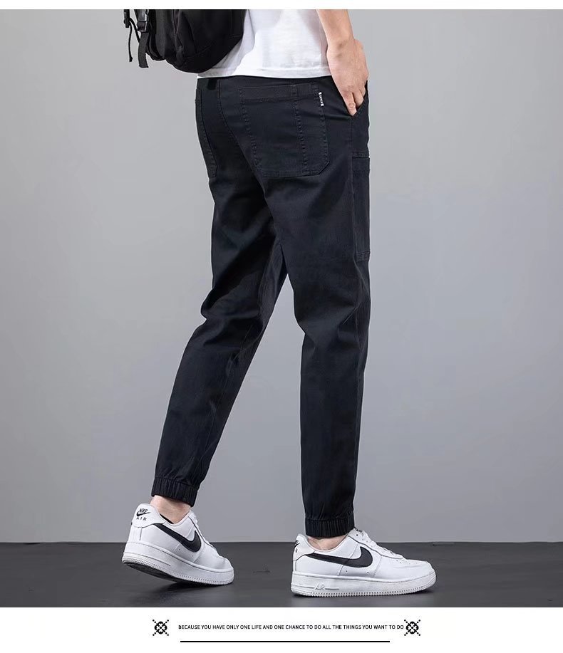 TikTok 6 백 폭발성 모조 데님 캐주얼 바지 남성 봄과 여름 얇은 트렌디 브랜드 느슨한 허리 다리 하렌 바지스토어 가기