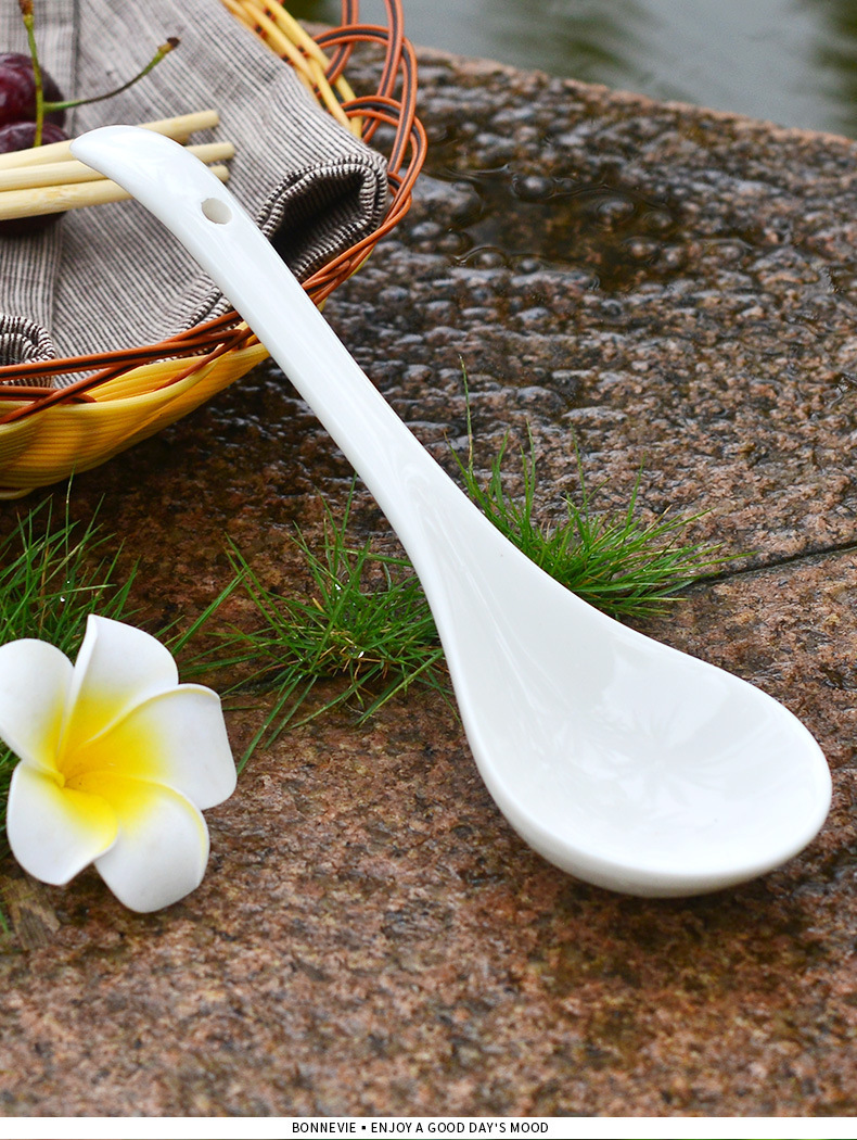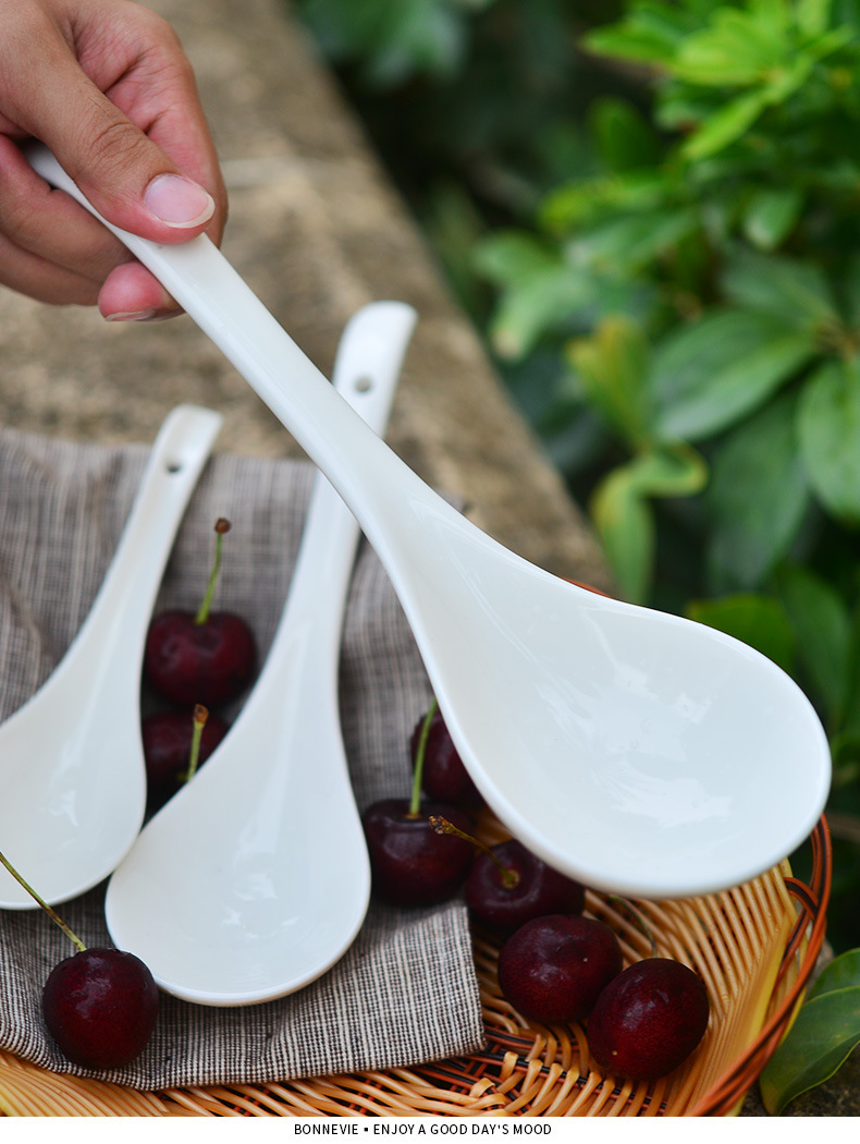 수프 스푼 세라믹 가정용 수프 큰 숟가락 큰 수프 도자기 숟가락 나무 숟가락 큰 긴 손잡이 죽 숟가락 세라믹 숟가락스토어 가기